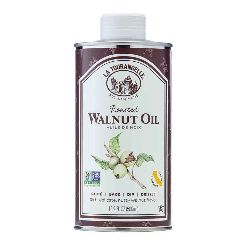 Unrefined oils cold-pressed from walnuts, almonds, hazelnuts and other tree nuts are used primarily in vinaigrette dressings and as finishing oils added to dishes at the end of cooking, and should not be heated past warm. They add both richness and a distinctive nutty flavor to salads, pastas, and sauces. These expensive products are highly perishable; buy them in small quantities and keep refrigerated until needed. When purchasing nut oils, read labels carefully to ensure you are not buying “nut-flavored” oils comprised of cheaper olive oil or seed oil blended with small amounts of nut oil. La Tourangelle brand offers a good selection of pure nut oils. https://amzn.to/4h4naAi Be aware of nut allergies when using them.