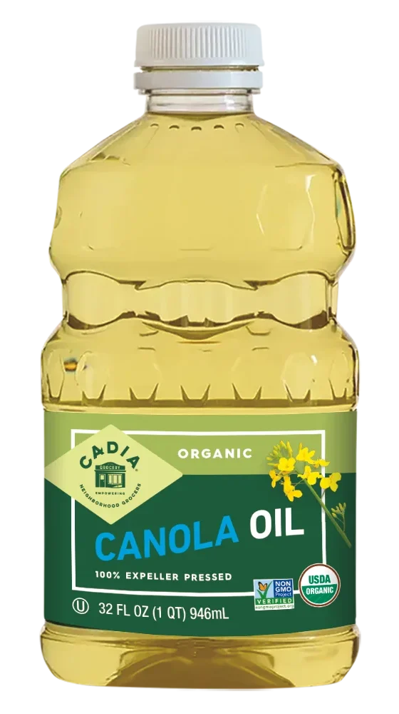 Canola oil is pressed from the canola seed, a selectively-bred cultivar developed from the rapeseed plant by Canadian plant scientists in the 1960s. (The name “canola” is a portmanteau of “Canada” and “ola,” a suffix referring to oil.) The object of this plant-breeding effort was to remove two undesirable elements, erucic acid and glucosinolates, which were recognized as unhealthful. In the 21st century, the canola plant was genetically modified for herbicide resistance, but this does not affect the plant seed. Many food health experts believe that, of the many available highly-processed seed oils, canola oil is the safest. I use canola oil for high-heat sautéing, pan-frying, and deep-frying, as well as for some vinaigrette dressings. I keep a squeeze bottle of canola oil handy for convenience when sautéing.