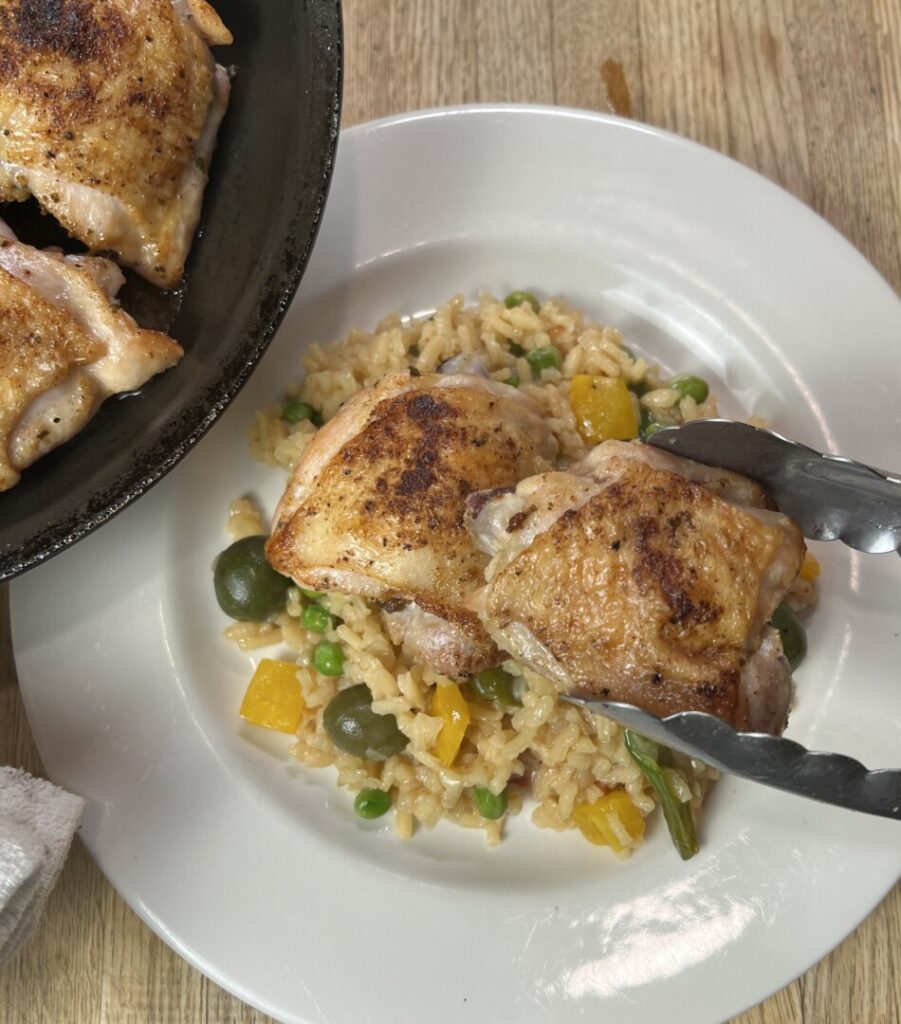 For this type recipe bone-in, skin-on chicken thighs are my preferred choice for moistness and best flavor. The first step is removing any excess skin, and then flavoring the chicken with a Latin-American-inspired seasoning rub. If you can find Mexican oregano, it adds a distinctive taste I think you’ll appreciate. https://amzn.to/4h9kFfX Seasoning meats and poultry ahead of time with salt and spices effects a slight “cure”: the salt and other flavorings penetrate into the flesh through the process of osmosis, making the meat tasty throughout. A 24-hour refrigerated curing time adds lots of flavor, but longer is better: up to 5 days.
