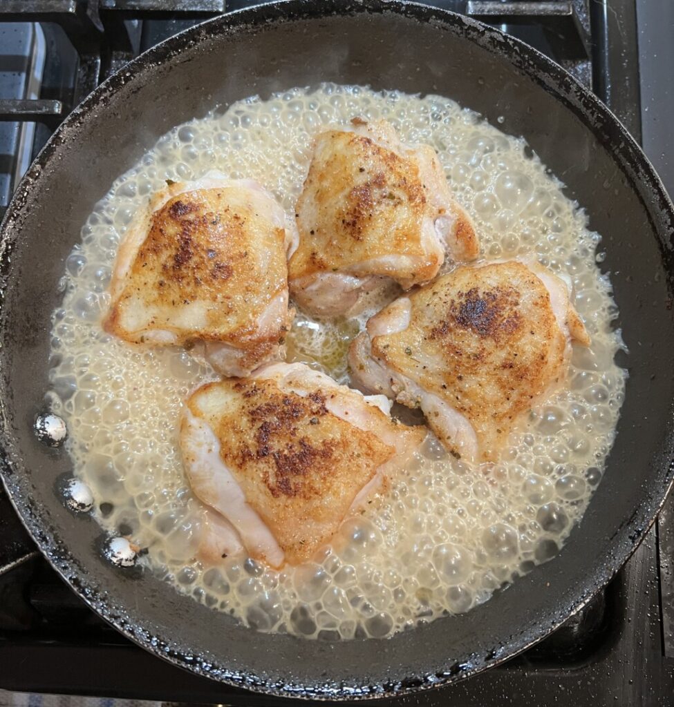 8. Braise the chicken thighs: