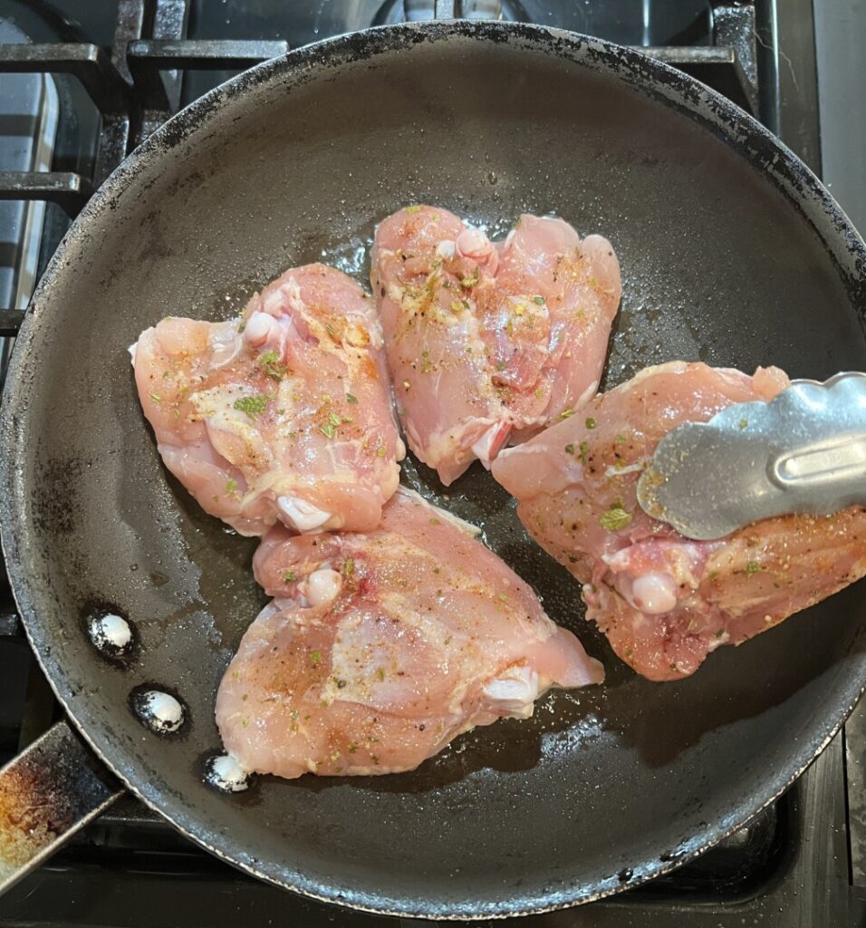 - Turn the thighs over and continue sautéing for about 1 minute.