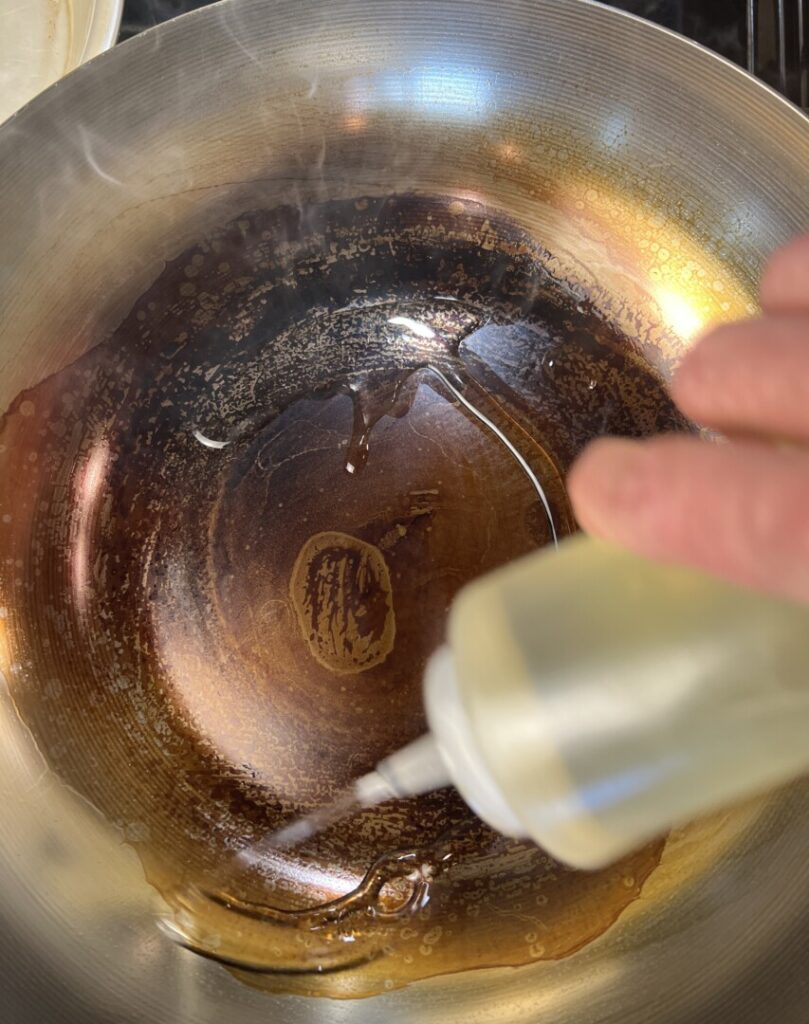 - Push aside the solids and thicken the sauce with a cornstarch slurry.