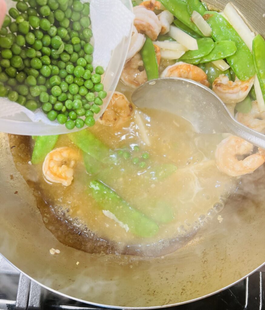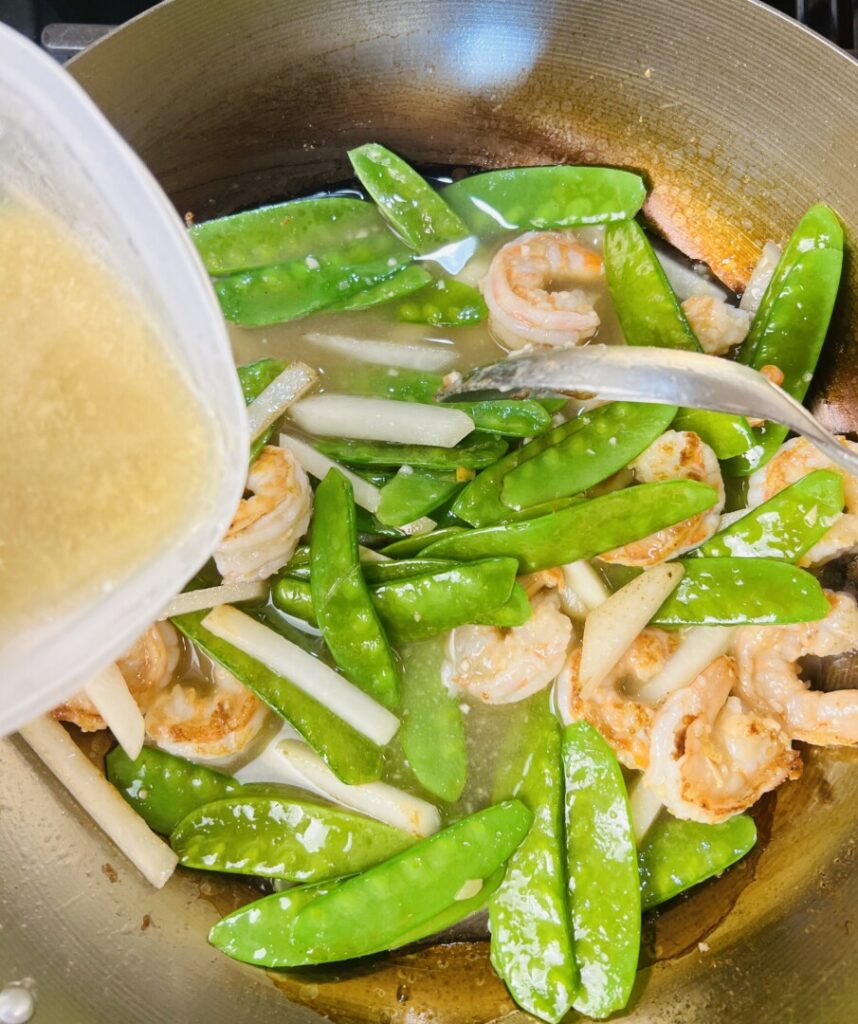 Here’s the general procedure of stir-frying a mixed protein and vegetable stir-fry with a sauce: