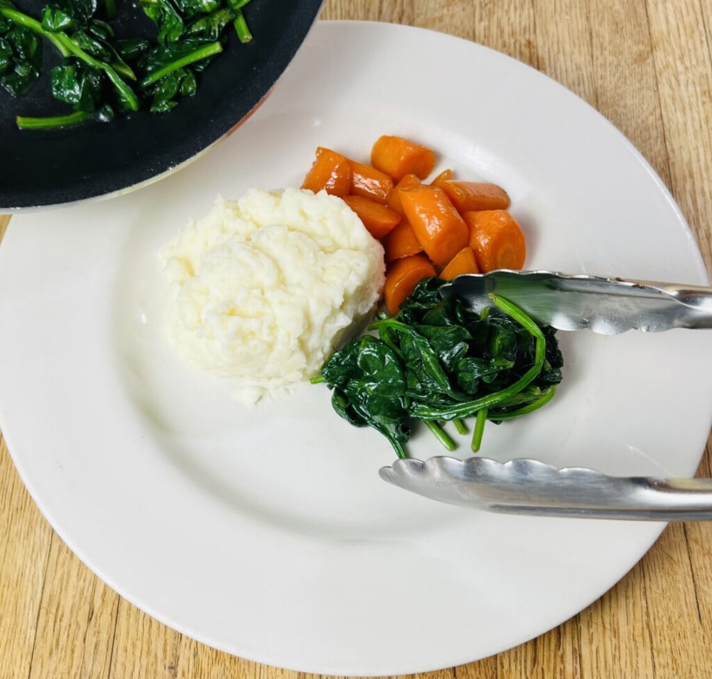 - If necessary, reheat the carrots and spinach.