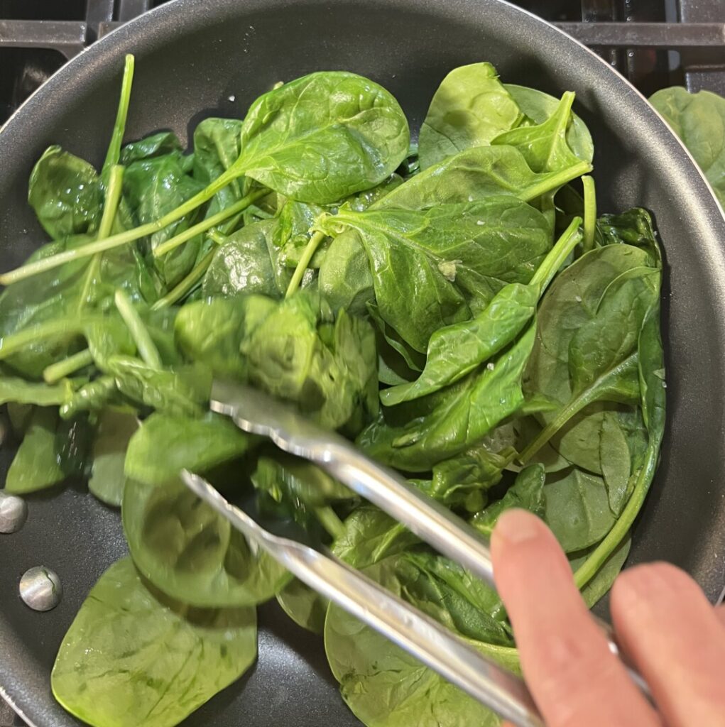 11. Sauté the spinach: