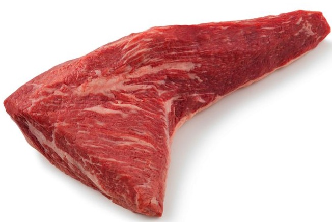 Tri-tip, as the name implies, is a triangular muscle fabricated from the lower hind corner of the bottom sirloin. In a grain-finished steer, this cut also has good marbling.