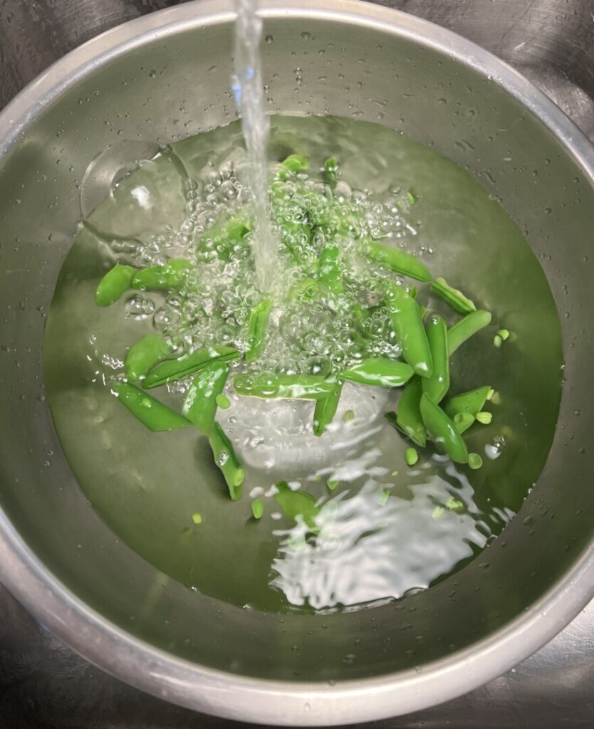 4. Par-fabricate the snap peas: (photos of this process appear in the lesson section of this post)