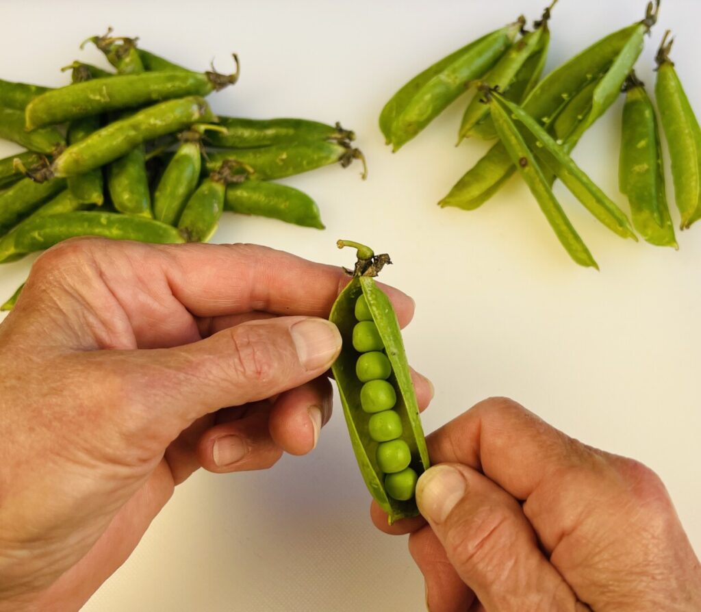 - Open the pods and remove the peas—or—if using frozen peas, place them on a folded paper towel and thaw them at room temperature.