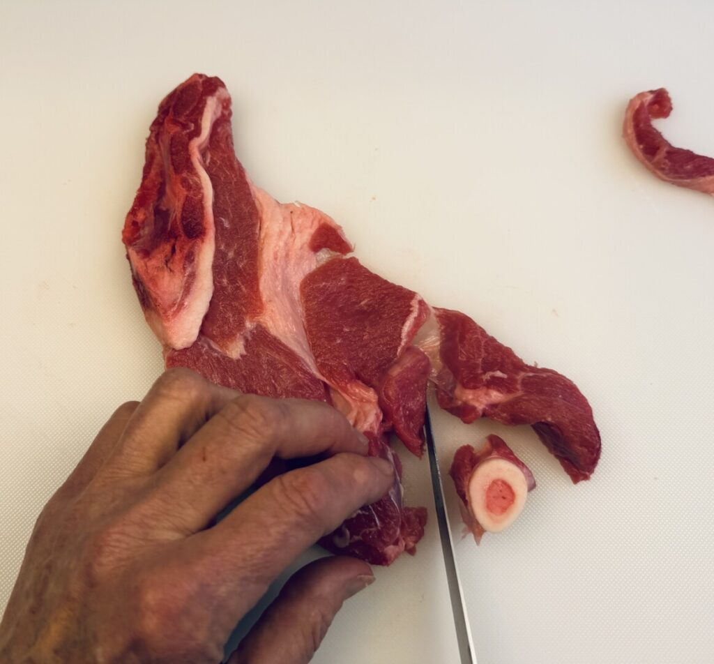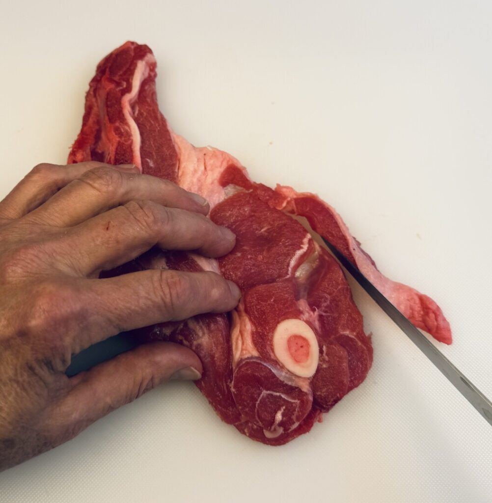 For this recipe we’re using lamb shoulder meat, which is widely available fabricated as shoulder steaks (also called shoulder chops).