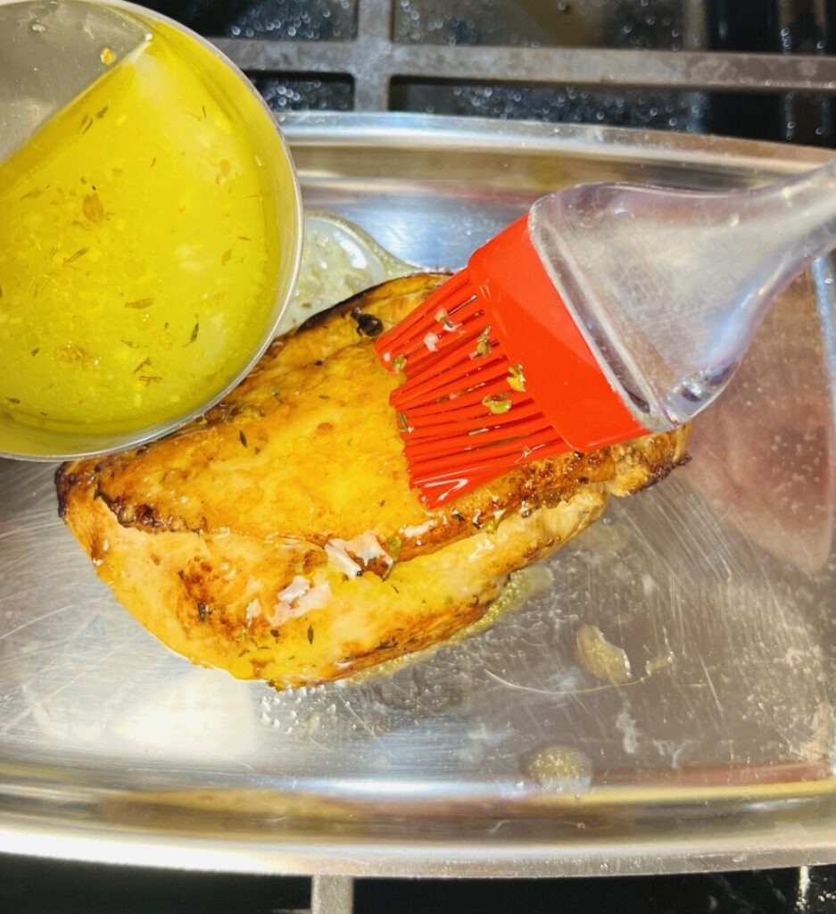 For best flavor and to enhance the texture of the skin, baste the chicken breast with the reserved marinade before, and once or twice during, roasting.