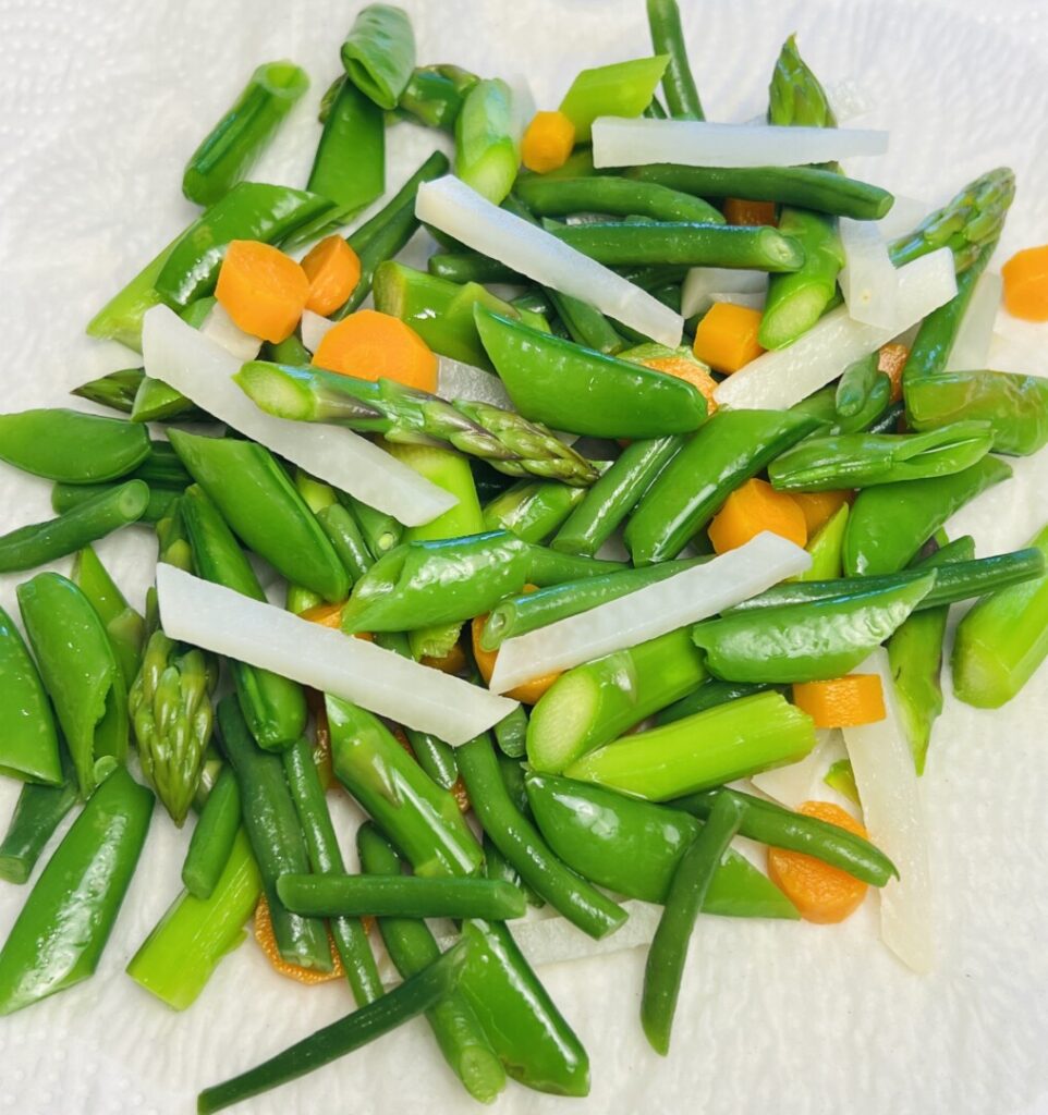 - Drain the vegetables and blot dry on paper towels.