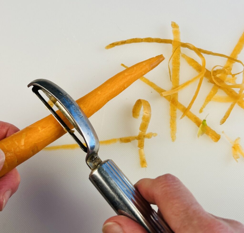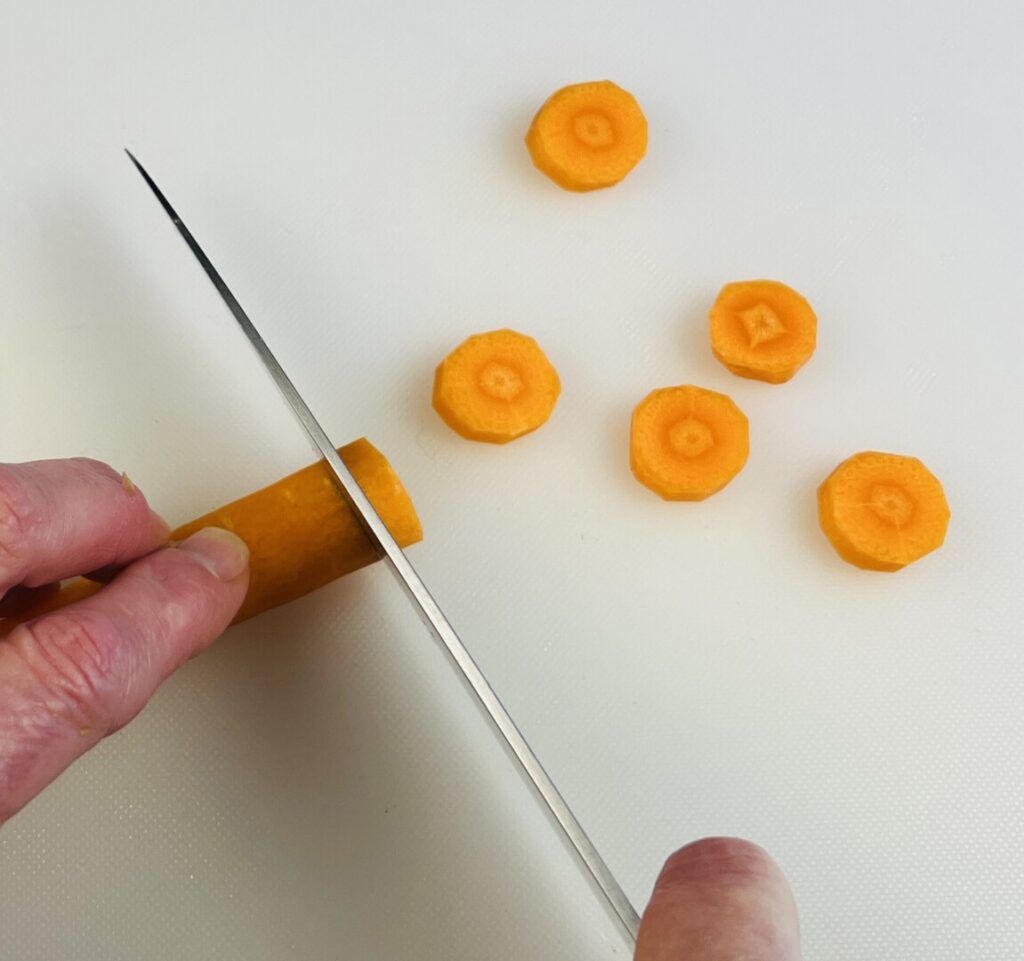 - Peel the carrot and cut it into rounds a little less than ¼ inch thick.