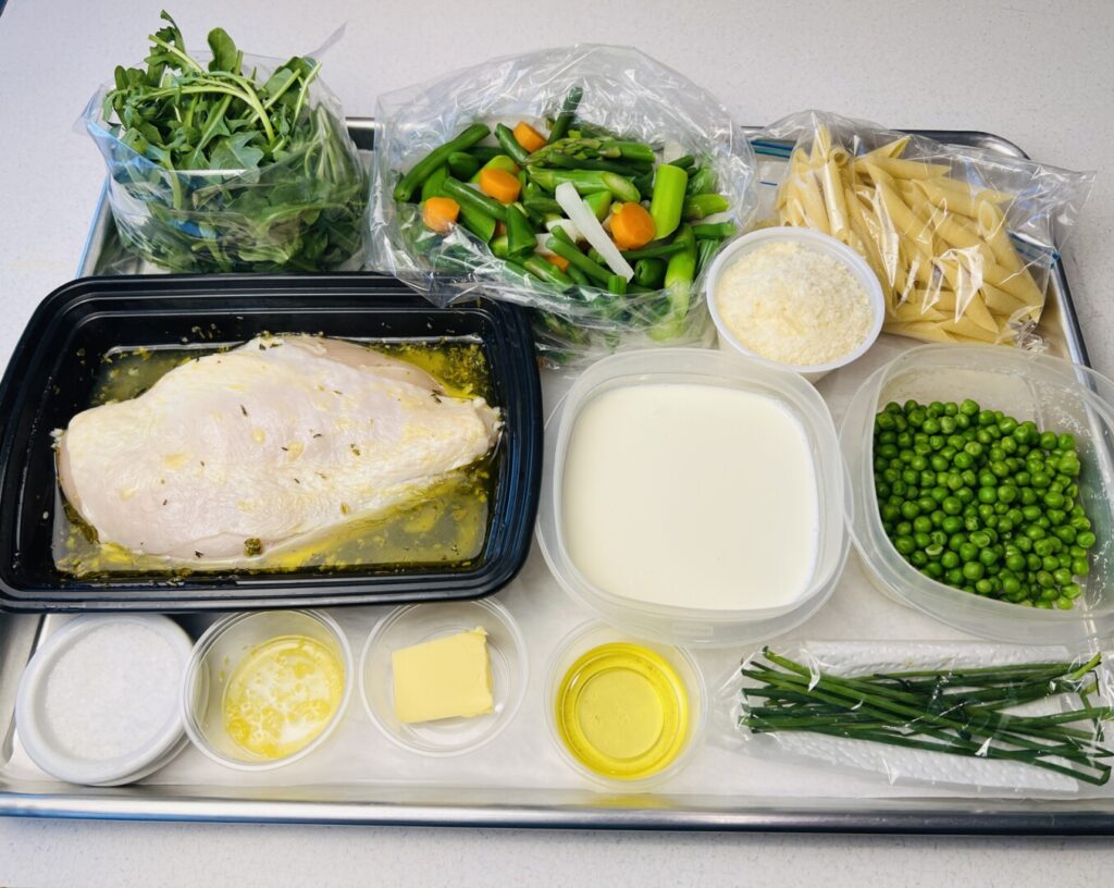 At this point all that remains is to grate the Parmigiano cheese and assemble the remaining ingredients. Here’s your mise tray: