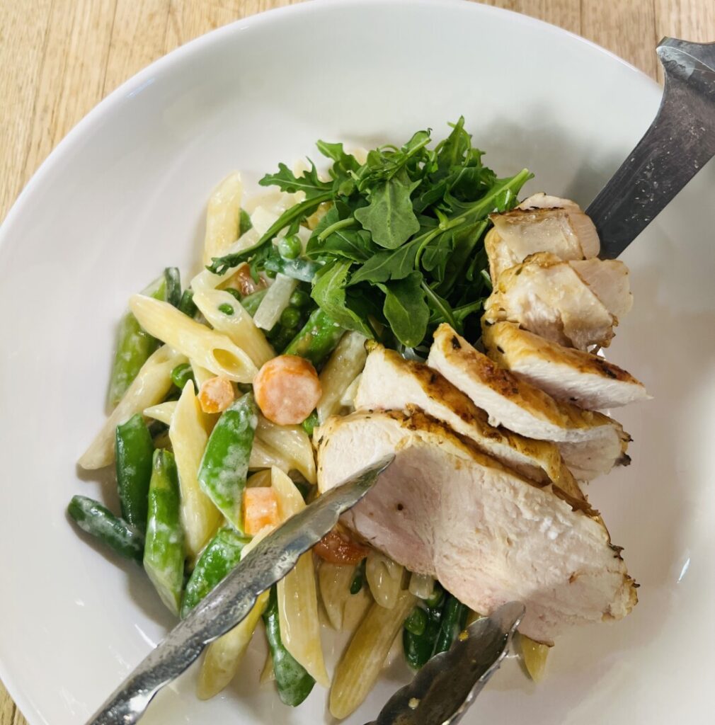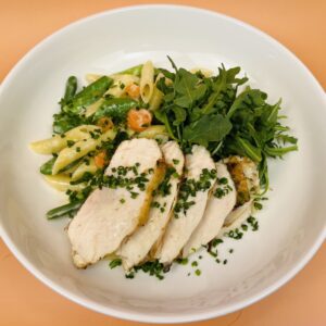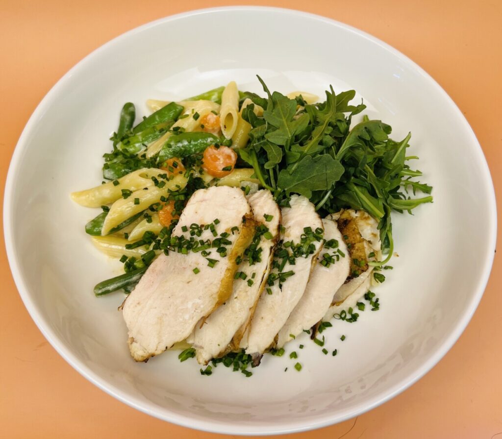 Penne Primavera with Pan-Roasted Lemon Chicken Breast