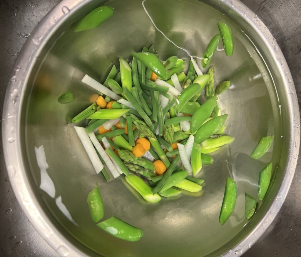 5. Blanch and refresh the primavera vegetables: