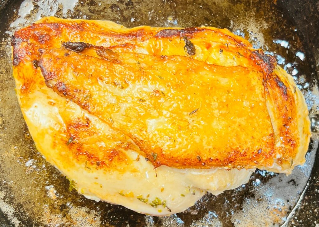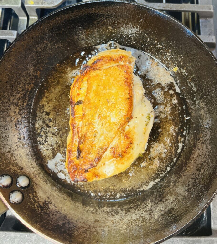 - If the chicken breast is very thick, turn it thickest side-down and sauté about 1 minute longer until golden brown on the bottom.