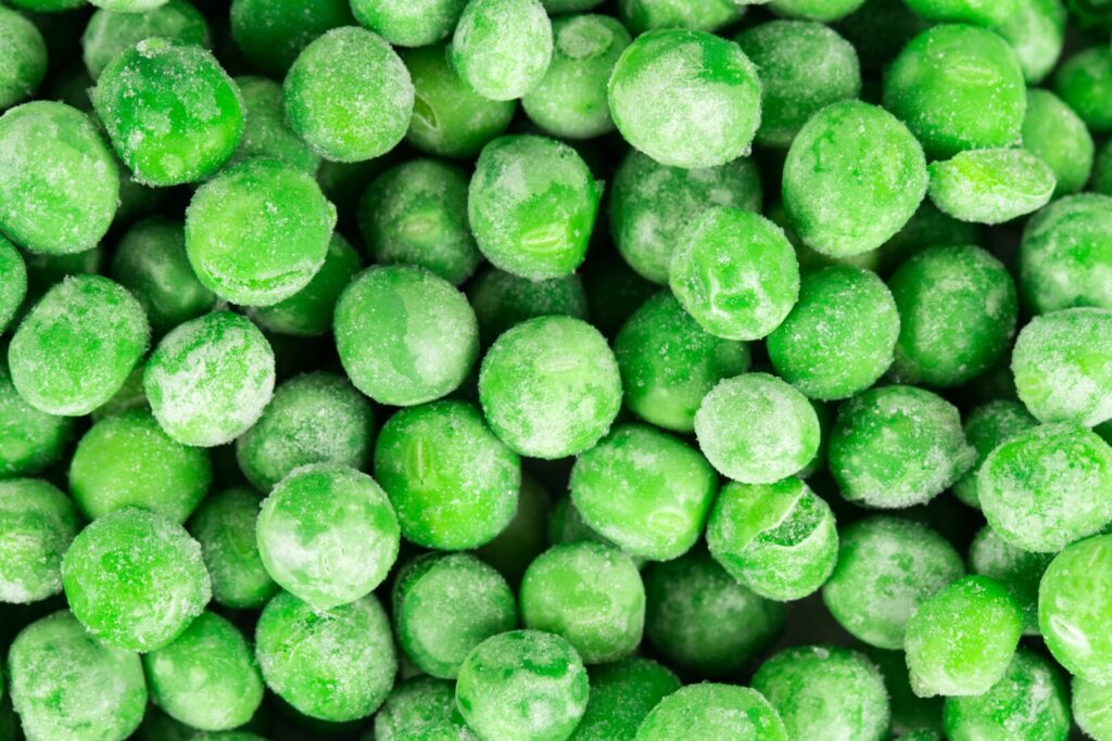 “English peas” is the name now used to distinguish fresh shell peas, or pod peas, from other types such as snap peas and snow peas. Nothing beats the sweet flavor and tender, juicy texture of English peas freshly picked from a local garden and eaten within hours of harvest. True, it requires some time and effort to remove the peas from their pods. But for me this is a peaceful, mindless activity that can be done while watching TV or relaxing with family members. However, a frequent problem with buying commercially-raised English peas is the time elapsed between harvest and table. The moment a pea pod is removed from the plant, the natural sugar in the peas begins converting into starch, causing them to lose flavor and acquire a dry and chewy mouthfeel. Unless you have your own garden, a nearby farmer’s market, or access to a high-quality produce purveyor, you may do better using frozen peas. The benefit of frozen peas is that they’re processed immediately after harvesting and, so, retain their flavor and texture. It’s important to understand that, before freezing, the shelled peas are blanched to optimal doneness; no further cooking is needed. Just thaw them and add to your dish.