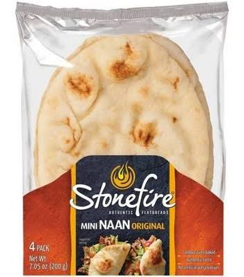 - Brush both sides of the naan breads with butter and place them on the grill. Grill for about 1 minute until grill marks form, then turn over and grill about 40 seconds longer. Wrap in a sheet of aluminum foil and hold in a warm place.
