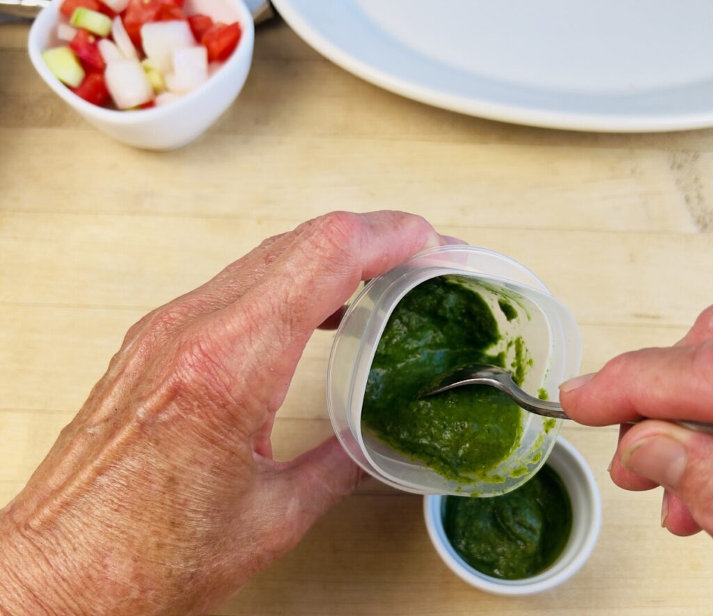 - If prepping ahead, scrape the chutney into a container. To hold longer than 24 hours, freeze it.