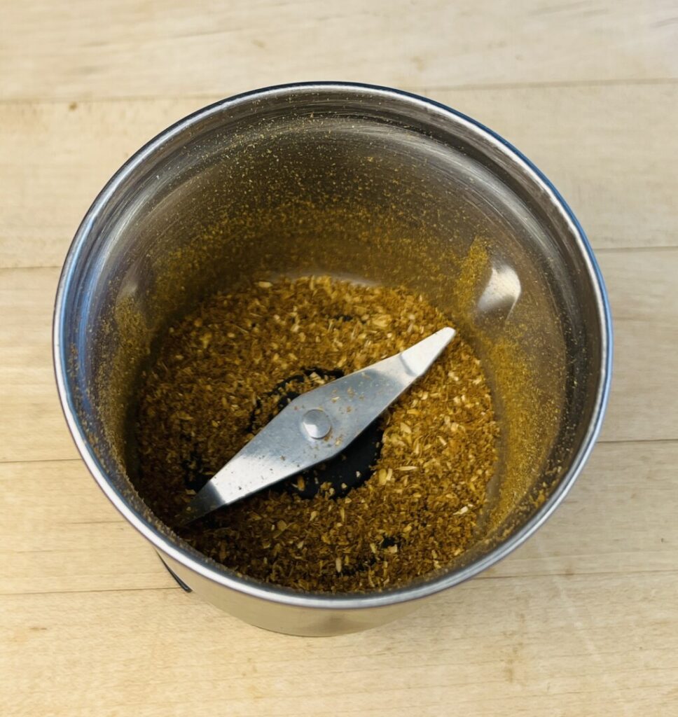 - Have ready a wet-dry electric spice grinder or a small blender near the stove.