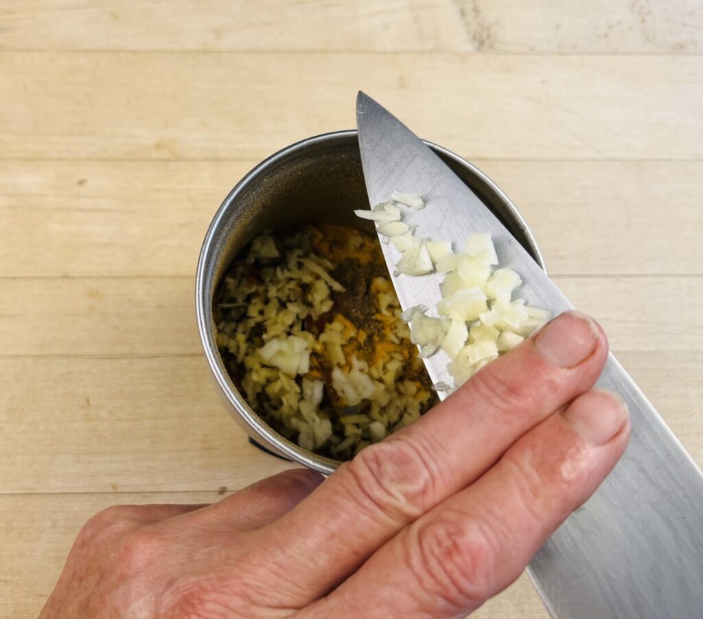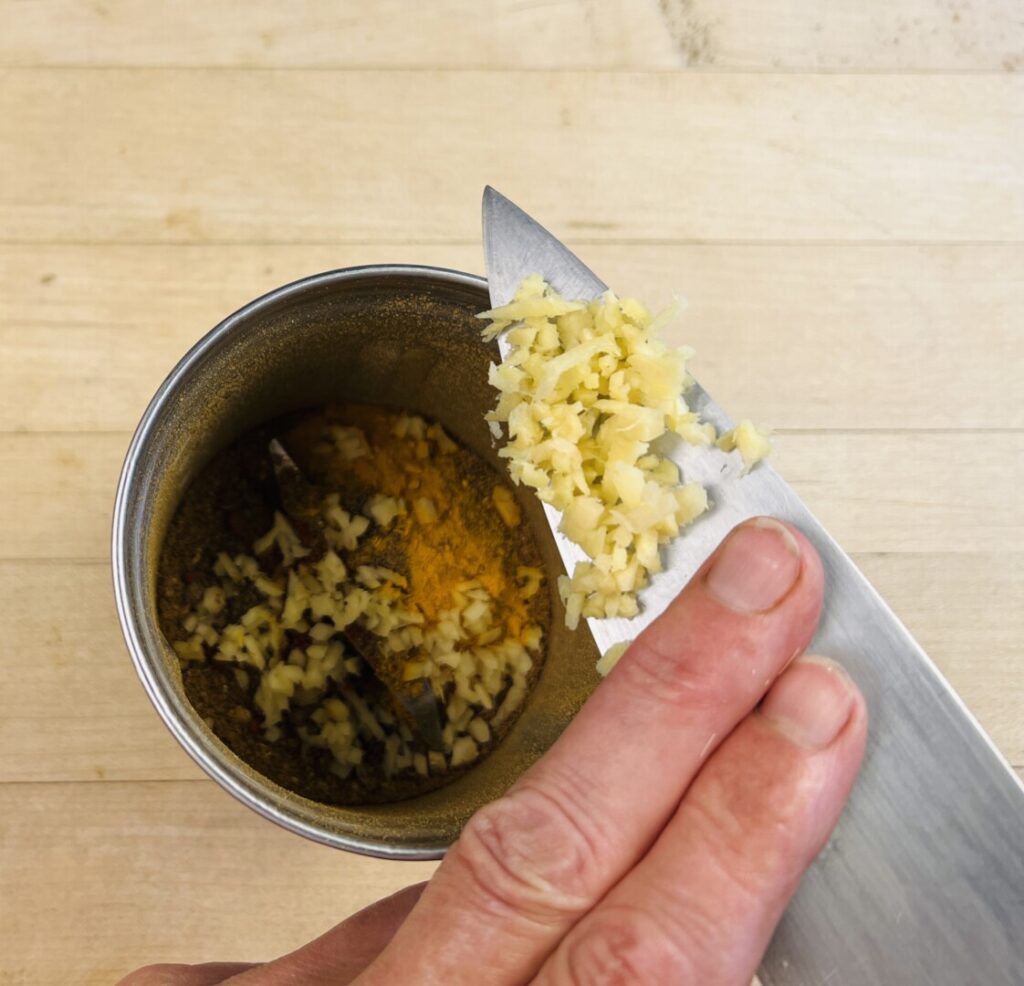 - Mince the ginger and garlic.