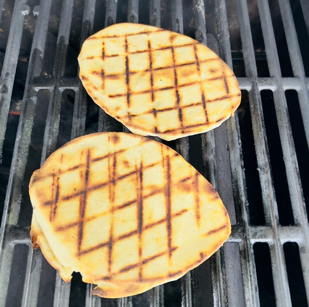 11. Grill the naan, corn, and chicken: