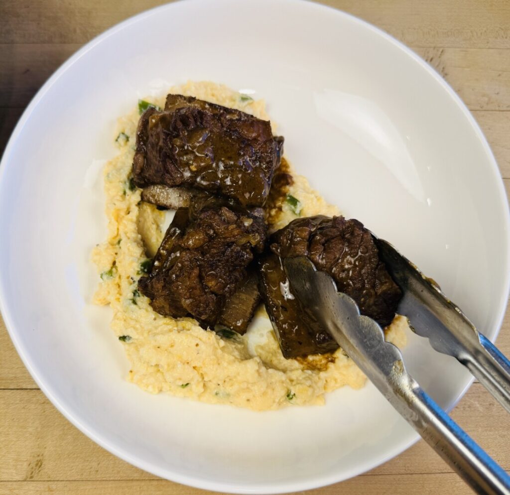 The rich, deeply-flavored sauce that results from braising short ribs simply begs for a soft-textured starch side dish to soak it all up. Most East Texans love Southern grits—not only for breakfast but also as a base for stews and braises like this one.