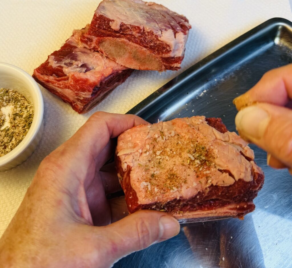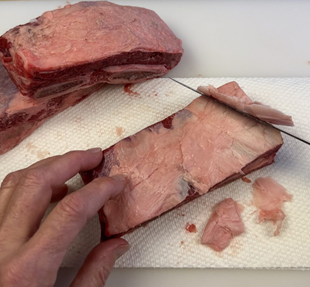 1. Trim and season the short ribs: (Refer to the lesson section of this post for process photos.)