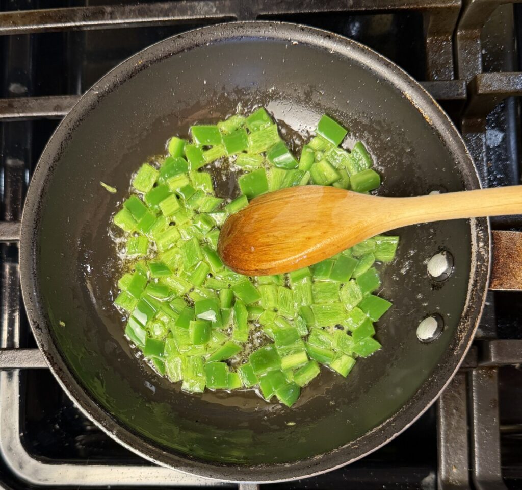 - Place a small sauté pan over medium heat, add the butter, and then add the jalapeños. Sauté for about 30 seconds until they soften slightly.