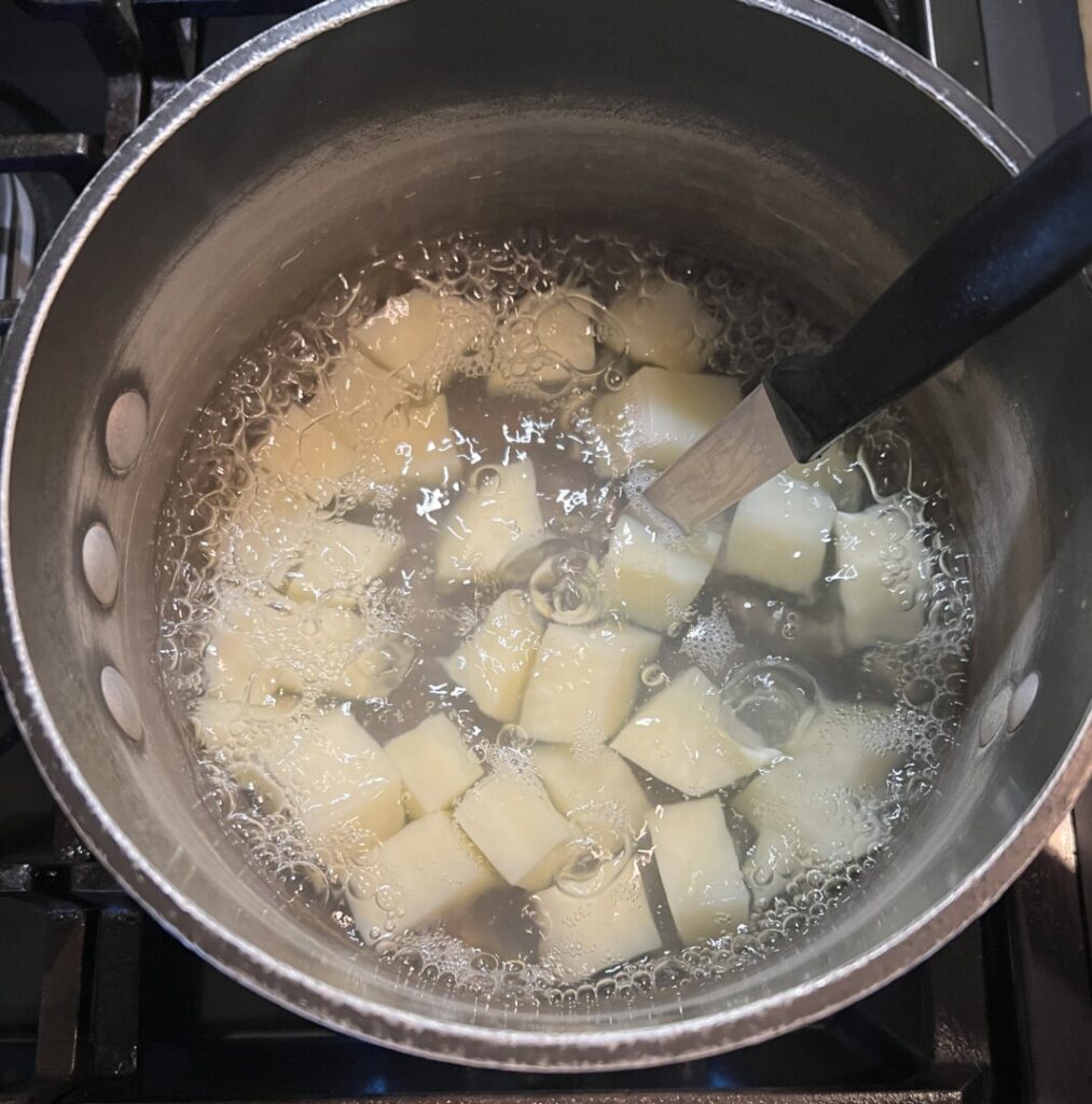 - Drain the potatoes, place them in a saucepot, add cold water to cover by ½ inch, and add the step 5 salt.