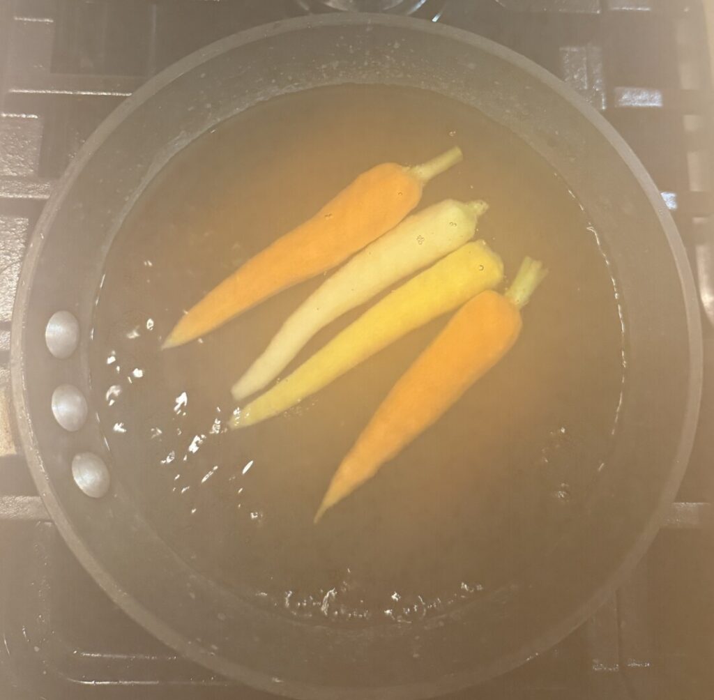 12. Heat the carrots in the microwave oven for about 2 minutes until hot.