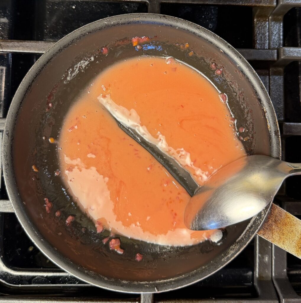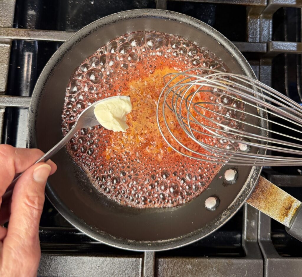 - Add the optional créme fraîche or heavy cream and reduce for a few seconds longer.