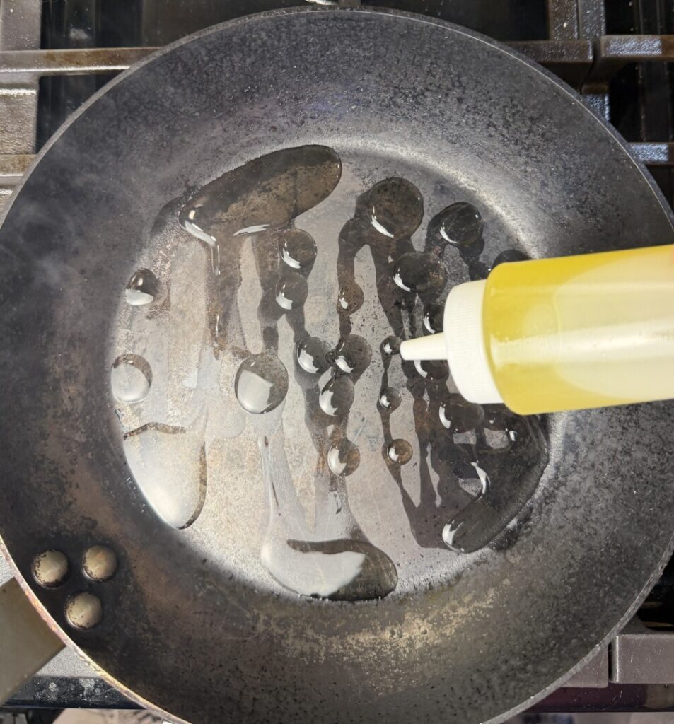 - Squeeze in most of the step 11 oil and swirl to coat the pan bottom and slightly up the sides.