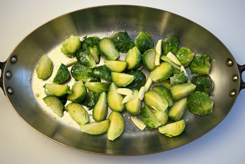 To match the appearance of the gnocchi and meatballs, large sprouts should be quartered, and medium-size ones halved.