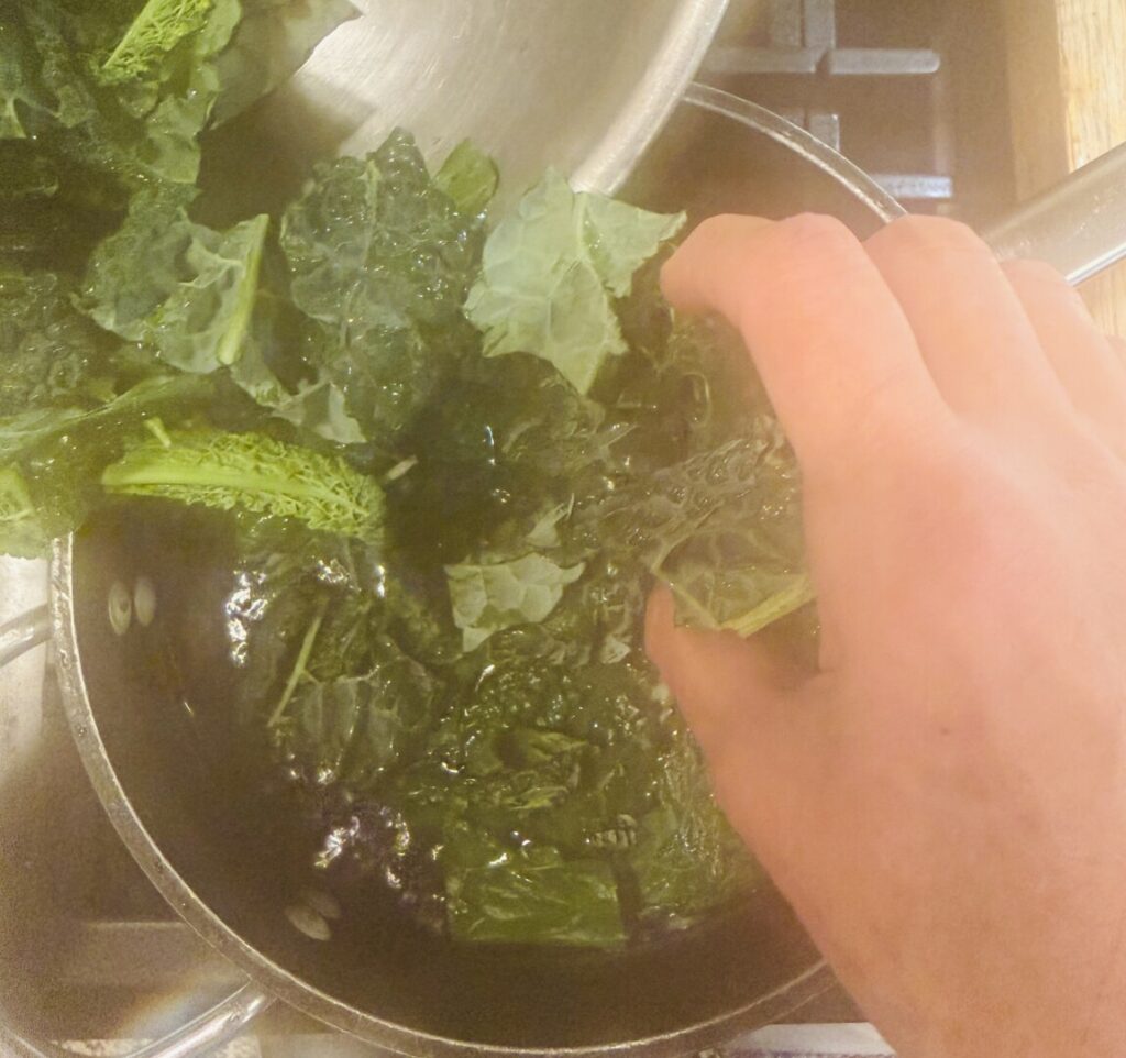 - Drain the kale and gently squeeze to remove excess water.
