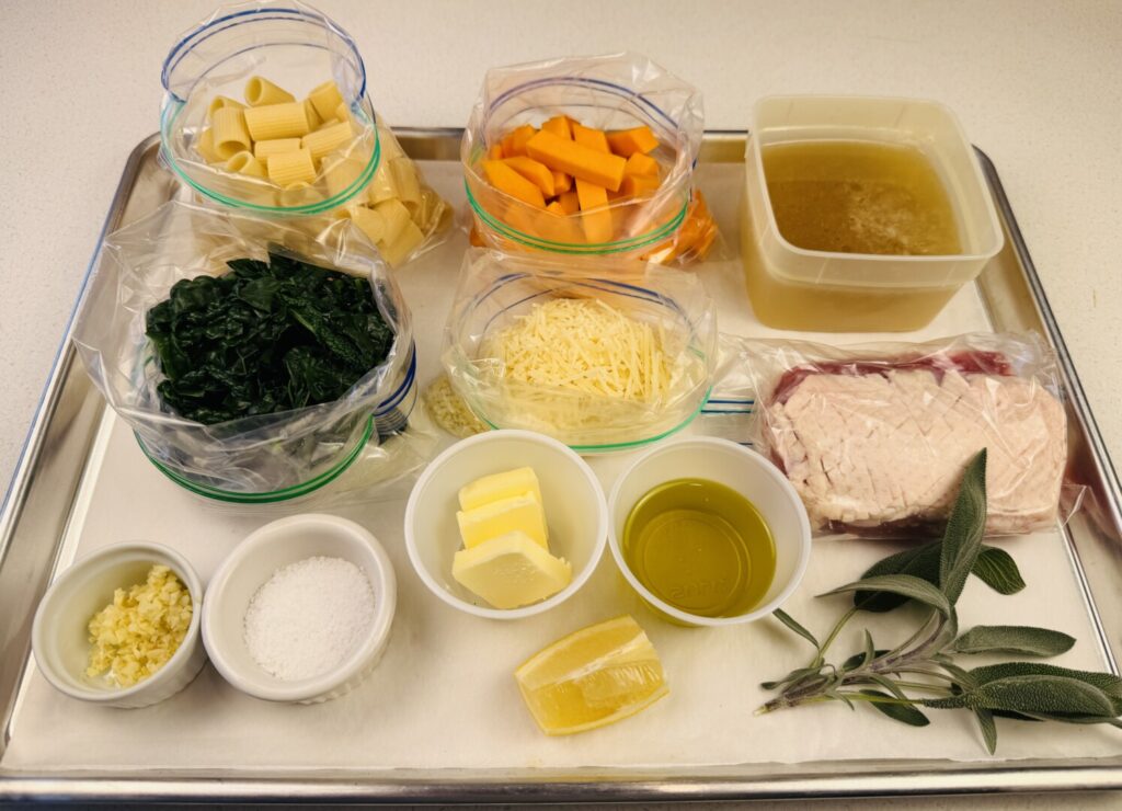 Assemble the remaining ingredients. If you’re prepping ahead, store your ingredients in containers and plastic bags. Here’s your mise tray: