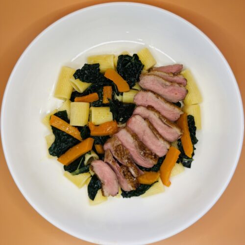 Autumn Rigatoni with Butternut Squash, Tuscan Kale, and Duck Breast