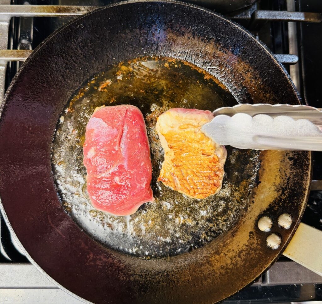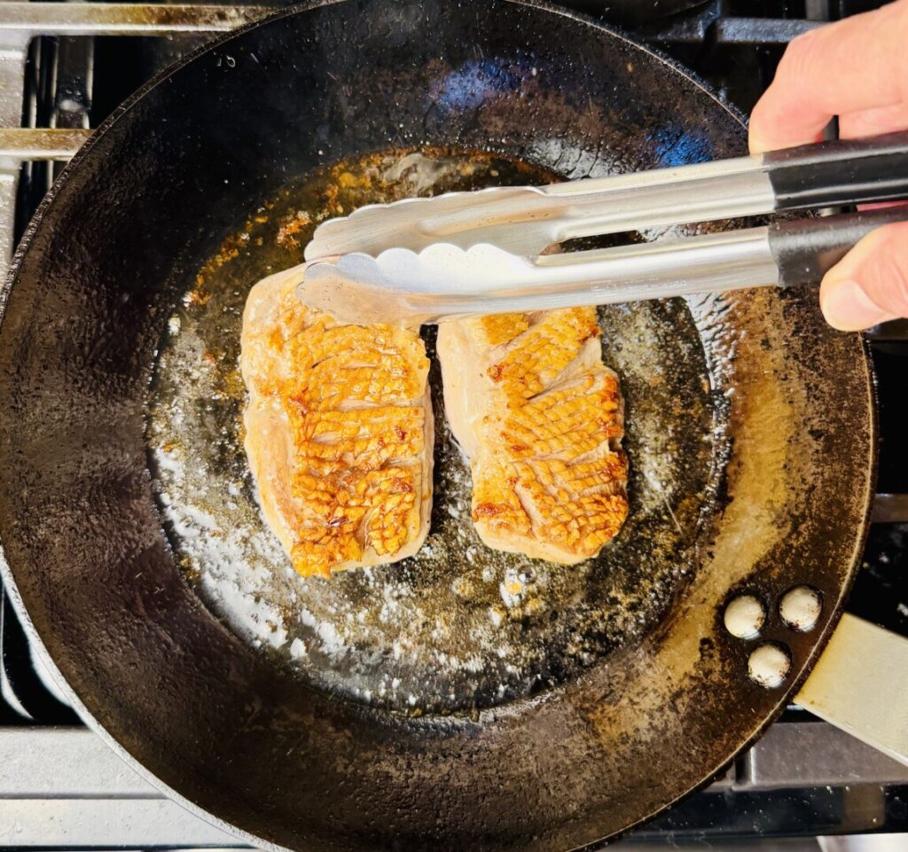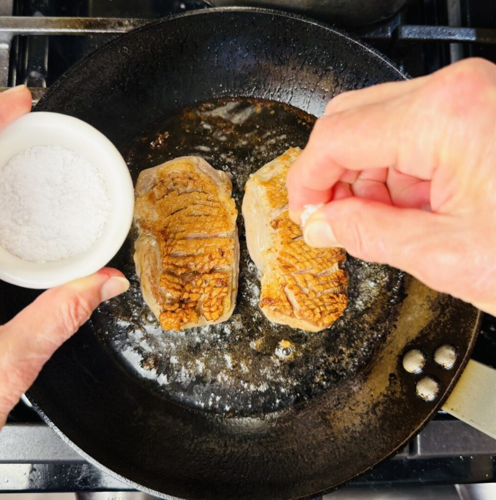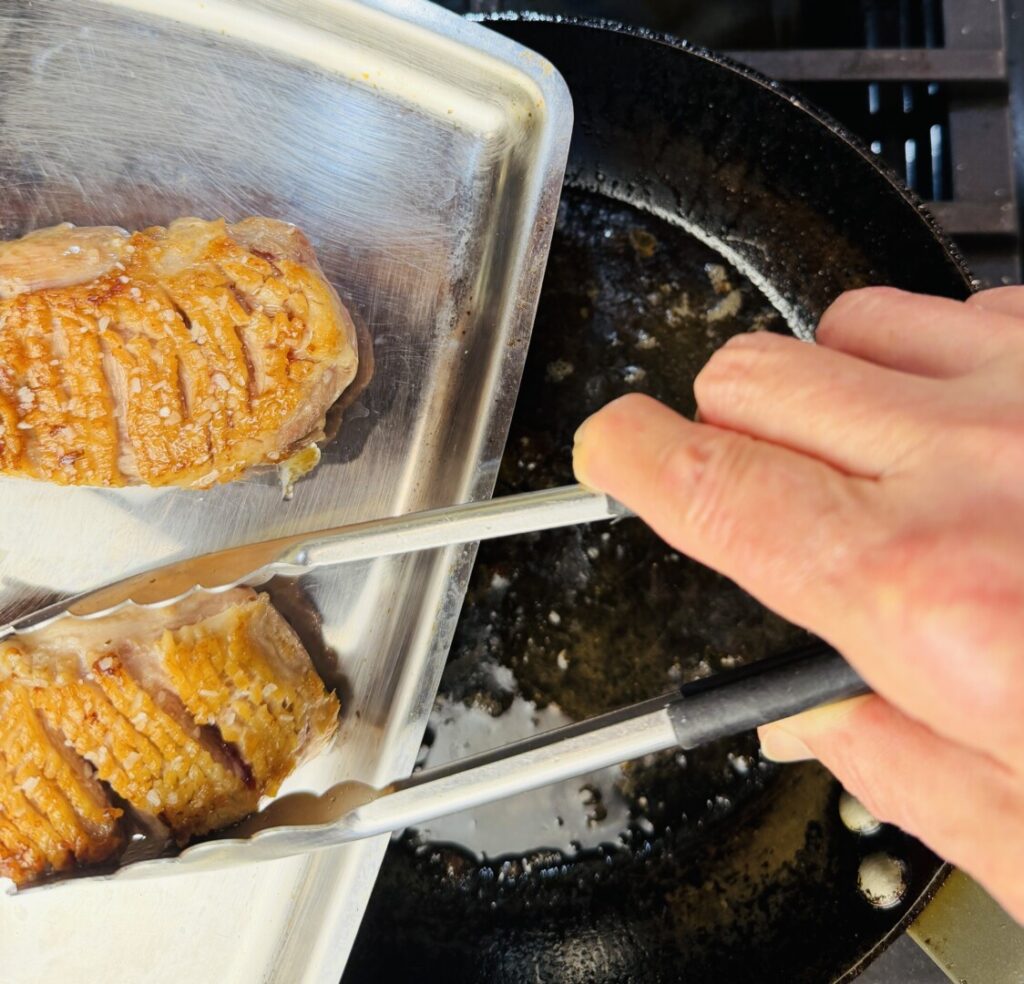9. Pan-roast the duck breasts or chicken breasts: