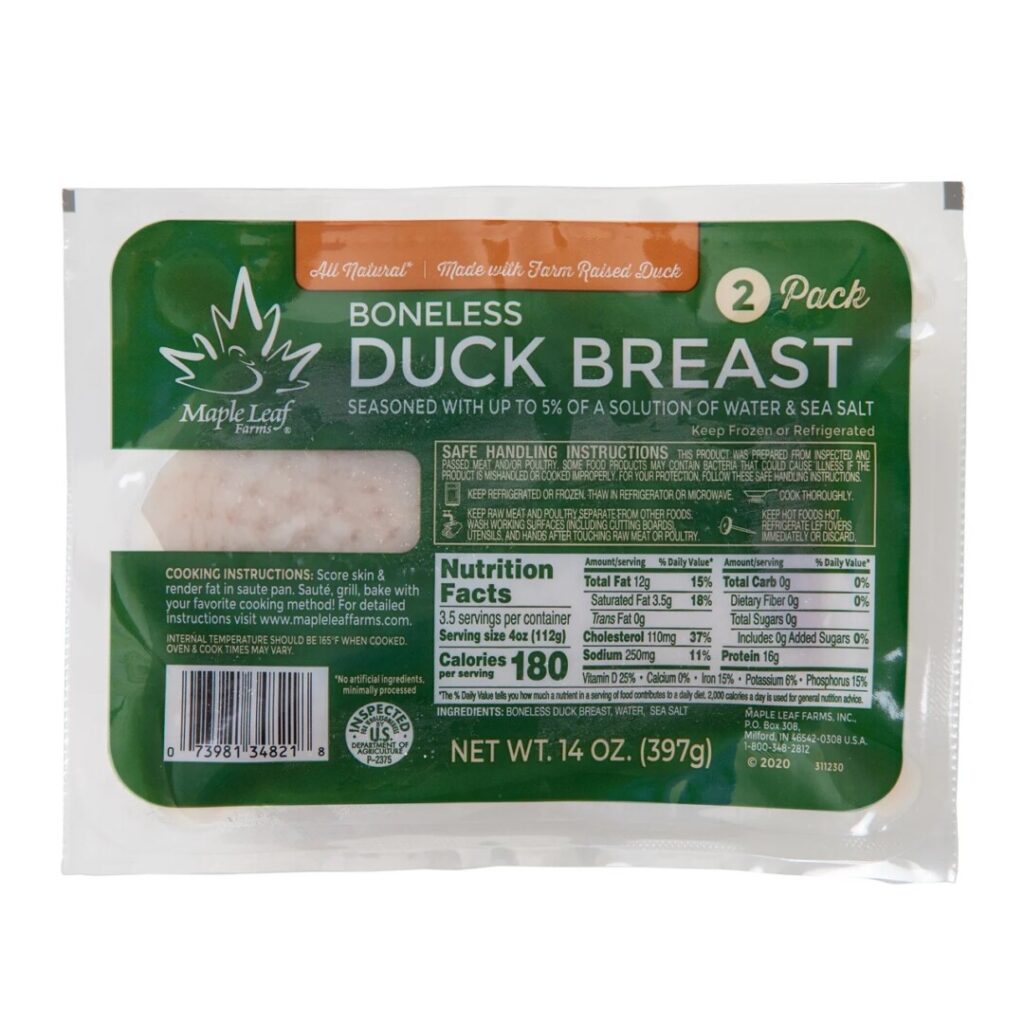 The good news is that you don’t have to bone out a whole raw duckling to enjoy duck breast (or duck legs). Most upscale supermarkets now offer frozen duck parts that need only trimming and minimal fabrication before cooking. Pekin and Rohan breed duck breasts weigh in at 5 to 6 oz apiece yielding one serving, whereas the breasts of the larger Muscovy duck breed typically weigh 10 to 12 oz and serve two. If you can’t source boneless duck breasts, or prefer an alternative, you can use chicken breasts instead. Skin-on boneless chicken breasts are best for this dish; for a lesson in fabricating them, refer to this post: https://prepholdcook.com/recipes/early-spring/penne-primavera-with-pan-roasted-lemon-chicken-breast/ If you want to use boneless, skinless chicken breasts, briefly sauté them rather than pan-roasting them.