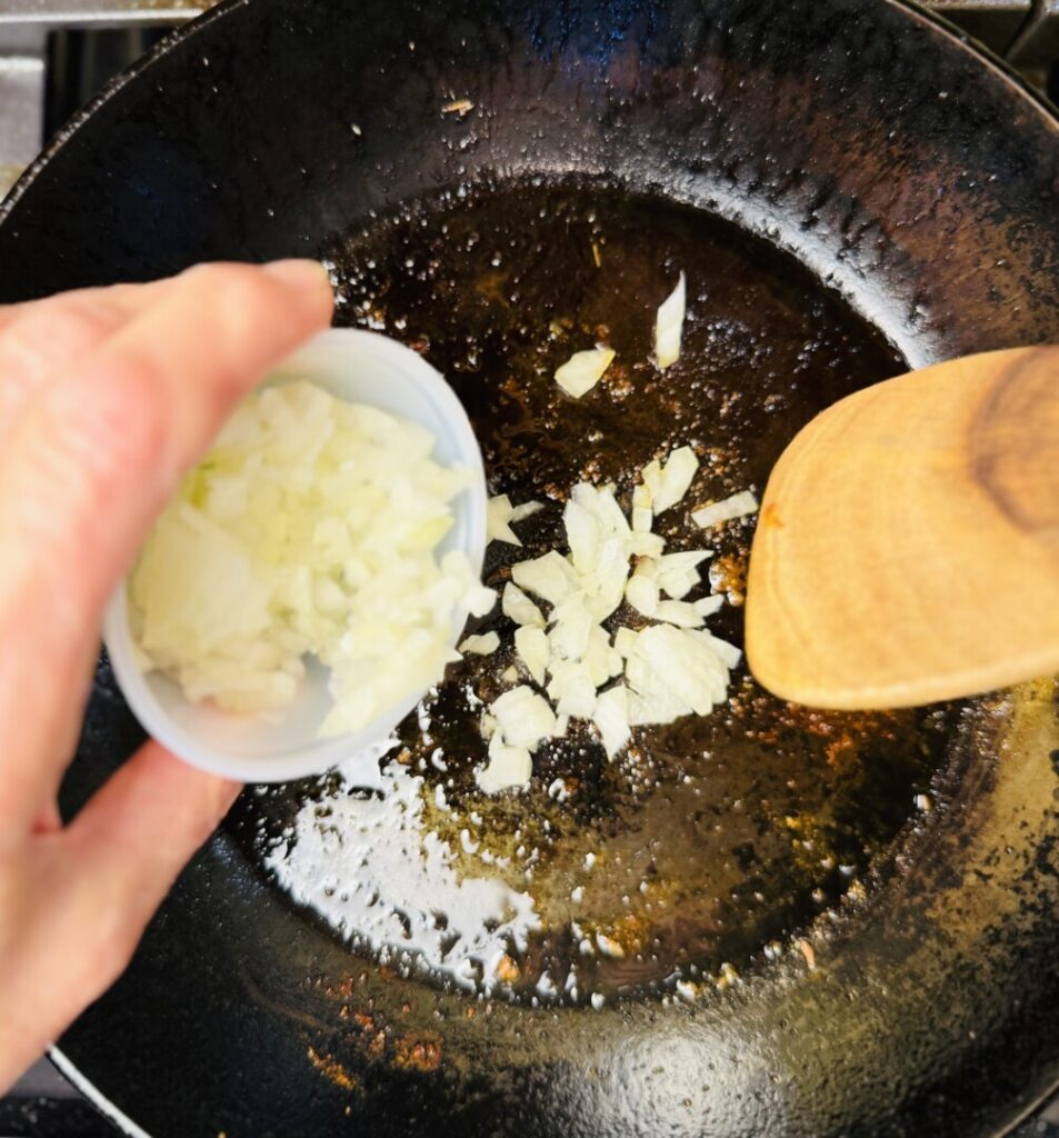 - Fine-chop the step 2 onion.