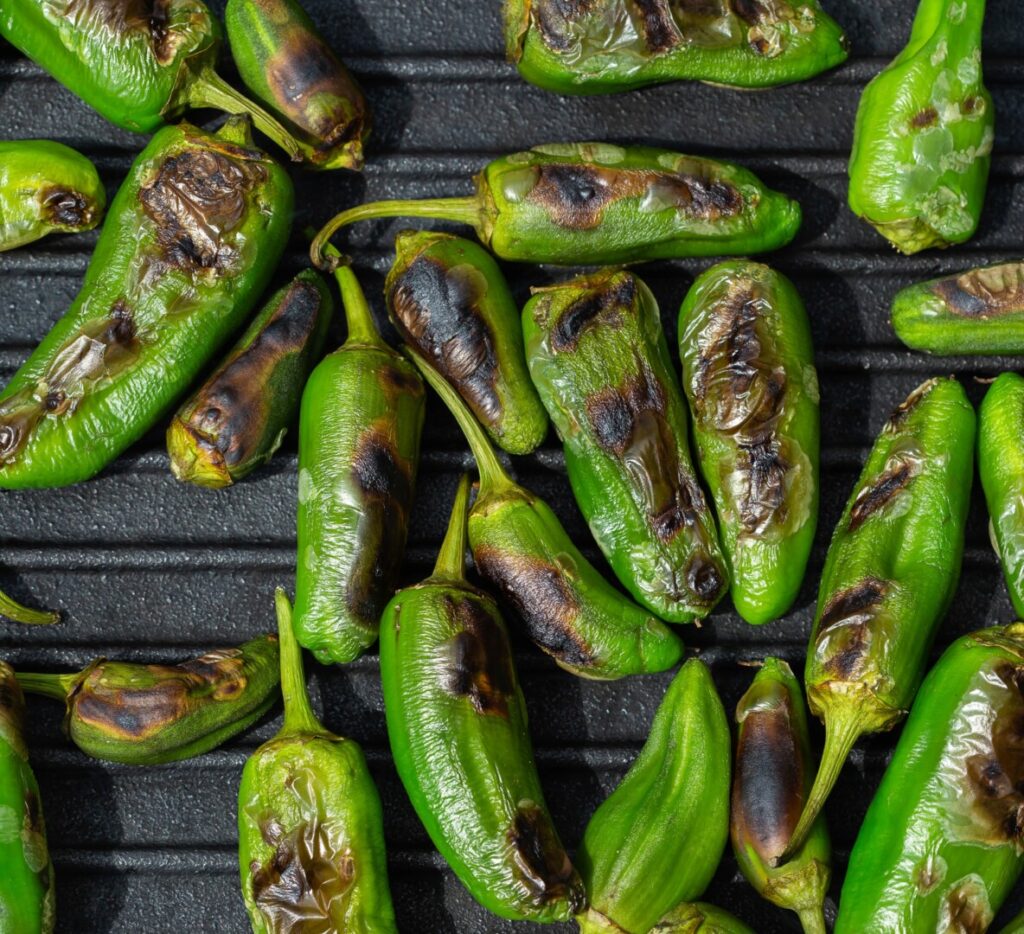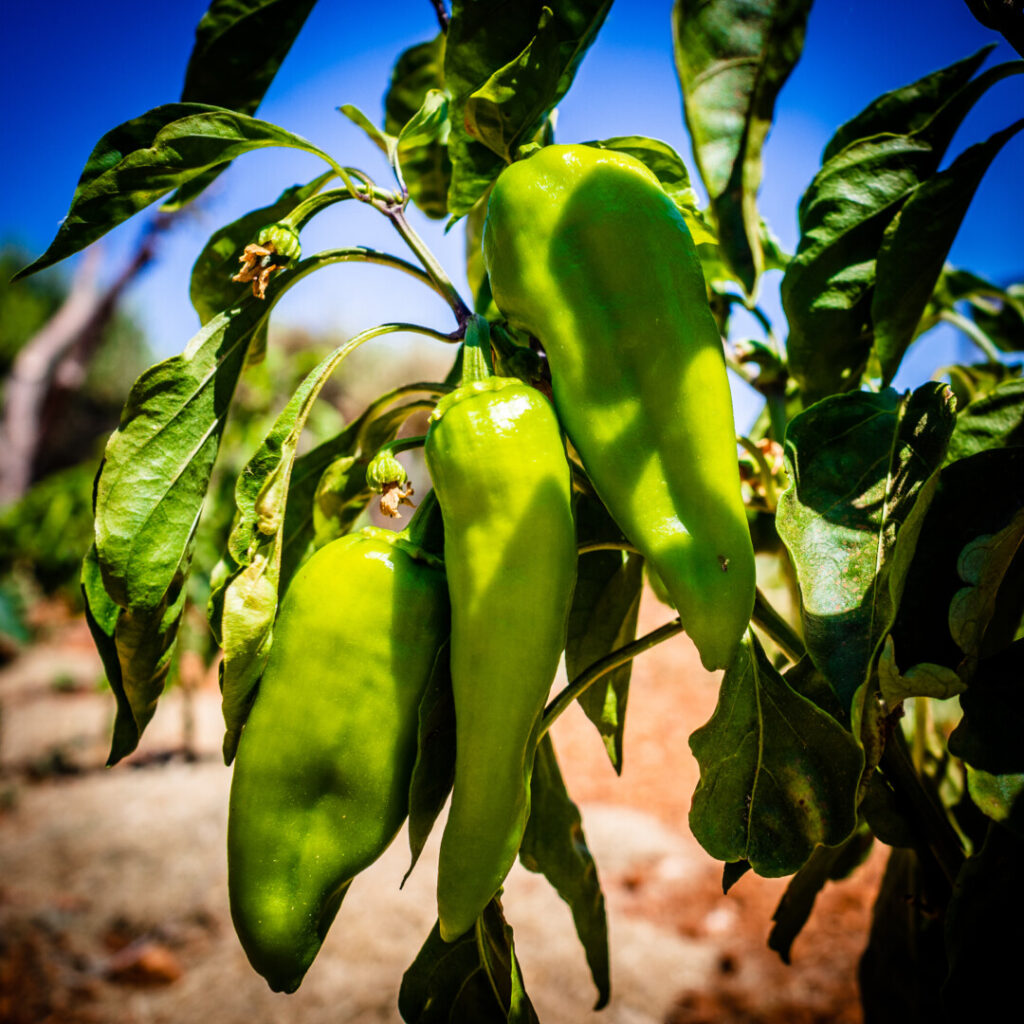 New Mexico chiles are a group of cultivars developed from indigenous capsicums grown by Native Americans in the American Southwest for thousands of years. These pale-green, elongated chiles have a distinctive tangy, earthy-fruity flavor that ranges from mild to extremely hot depending on cultivar type. Although chiles are grown in various locations throughout the American Southwest, those grown in New Mexico’s Hatch Valley are widely considered the best. Some of the crop is allowed to ripen bright red and is used fresh, or dried to make chile powders and purées; however, the majority is harvested green.