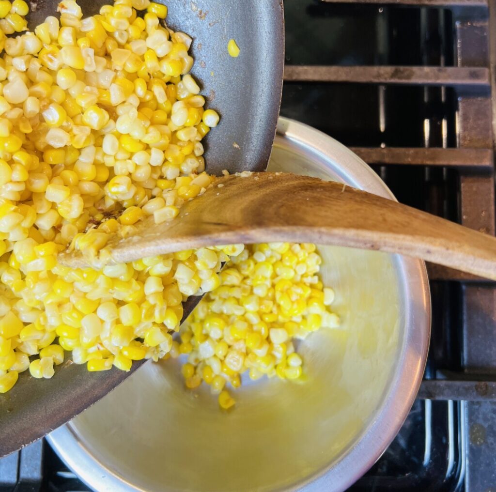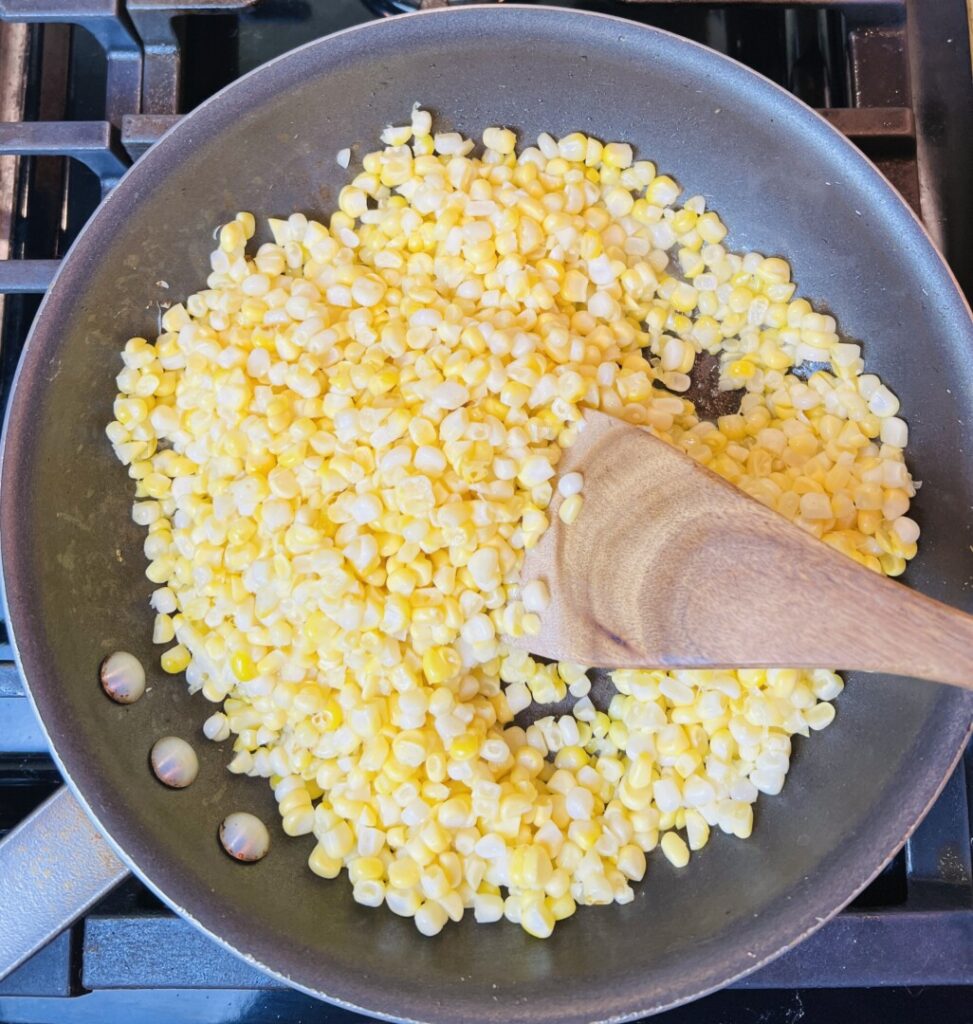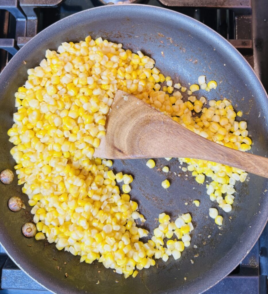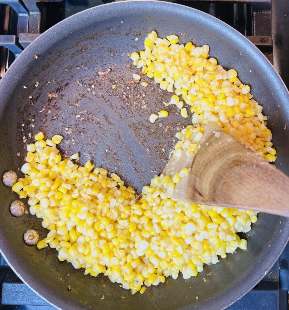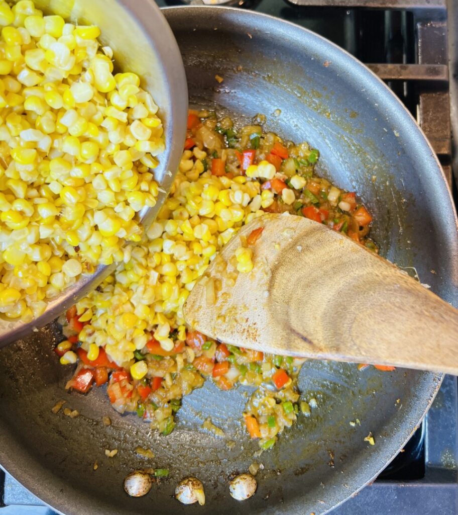 - Return the corn kernels to the pan and stir to combine them with the vegetables.