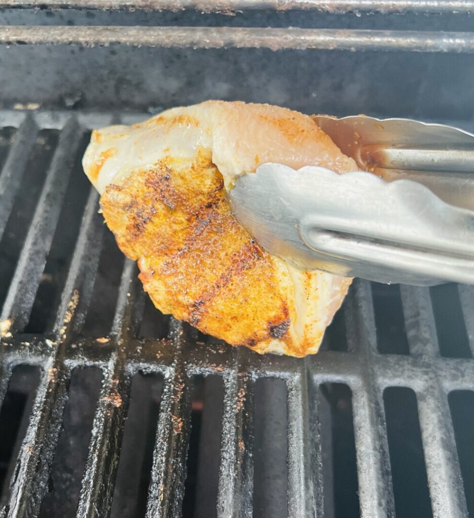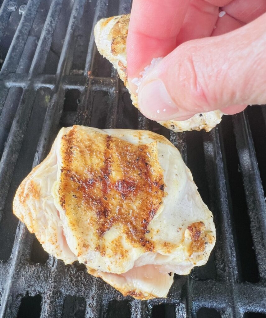 - Squeeze the remaining oil onto the non-skin-side of the chicken breast and turn it over. Grill about 1 minute longer. Depending on the salt content of your Cajun seasoning, you may want to season the chicken with salt.