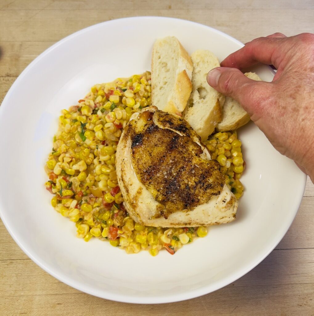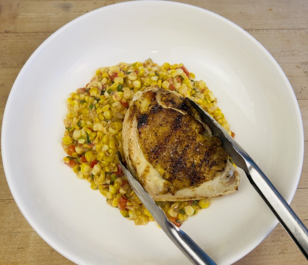 Cajun Grilled Chicken with Fresh Corn Maque Choux