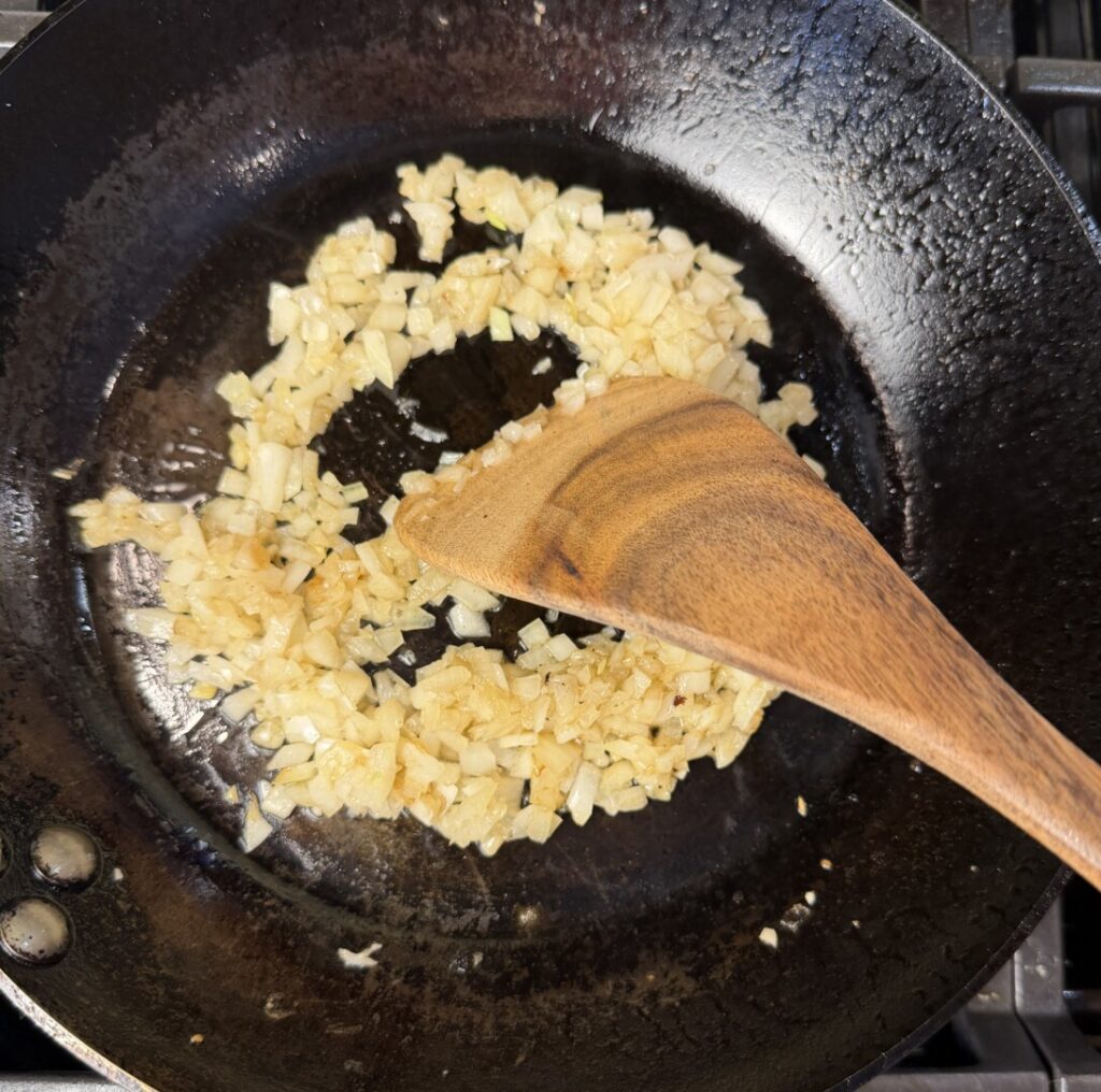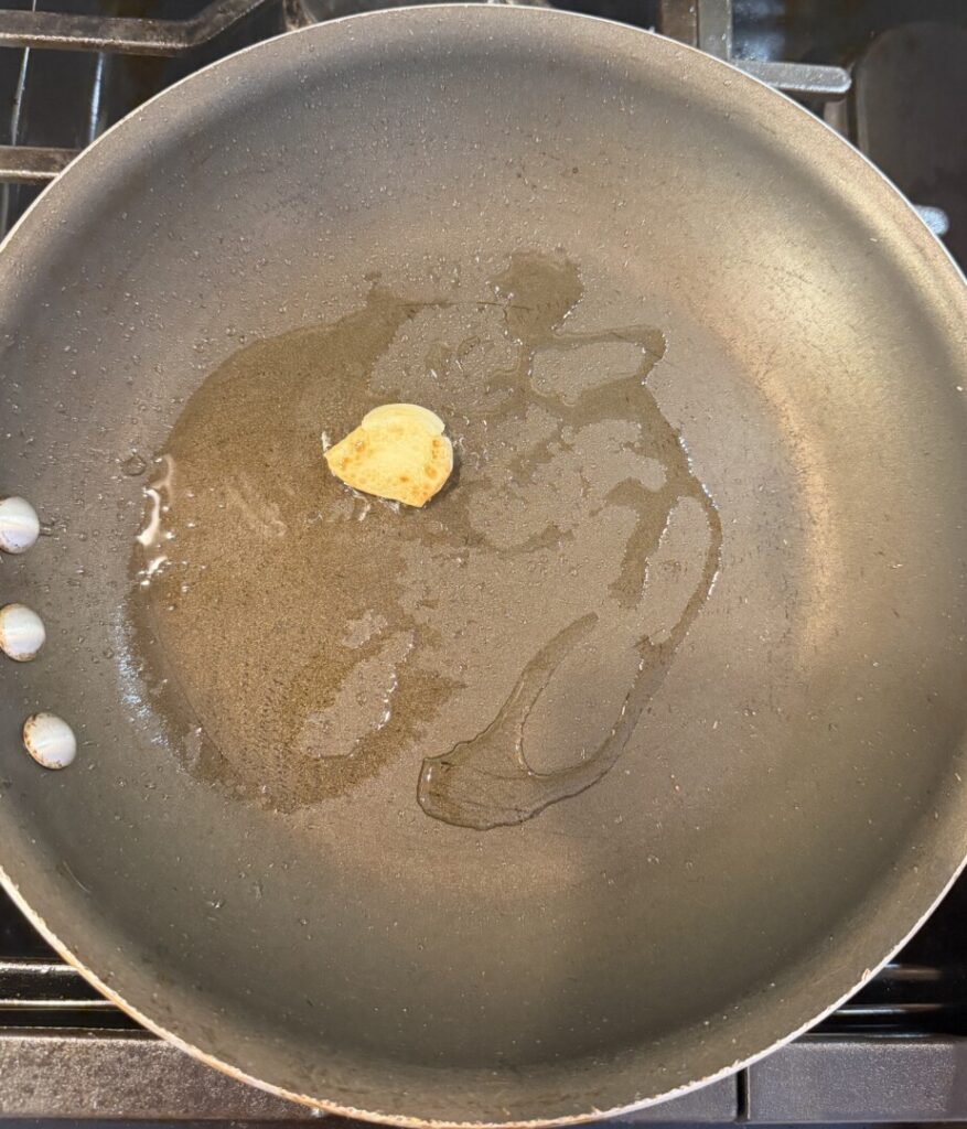- Place a sauté pan (preferably carbon steel) over medium heat and wait for it to get hot.