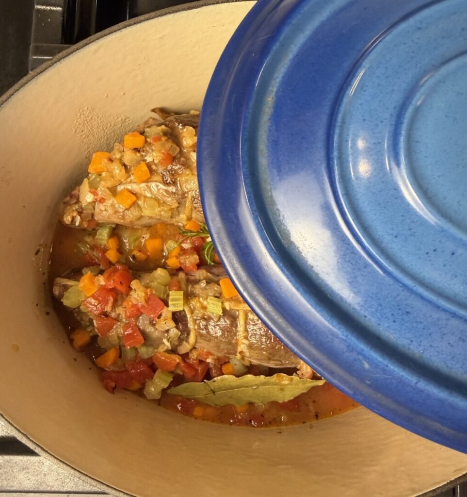 When the weather outside is cold, damp, and windy, it’s time for long-cooking, oven-braised dishes that warm up the kitchen and also warm your heart. Braising is the perfect cooking method for winter. A preliminary browning followed by slow simmering and steaming transforms tough but tasty cuts of meat into succulent tenderness.