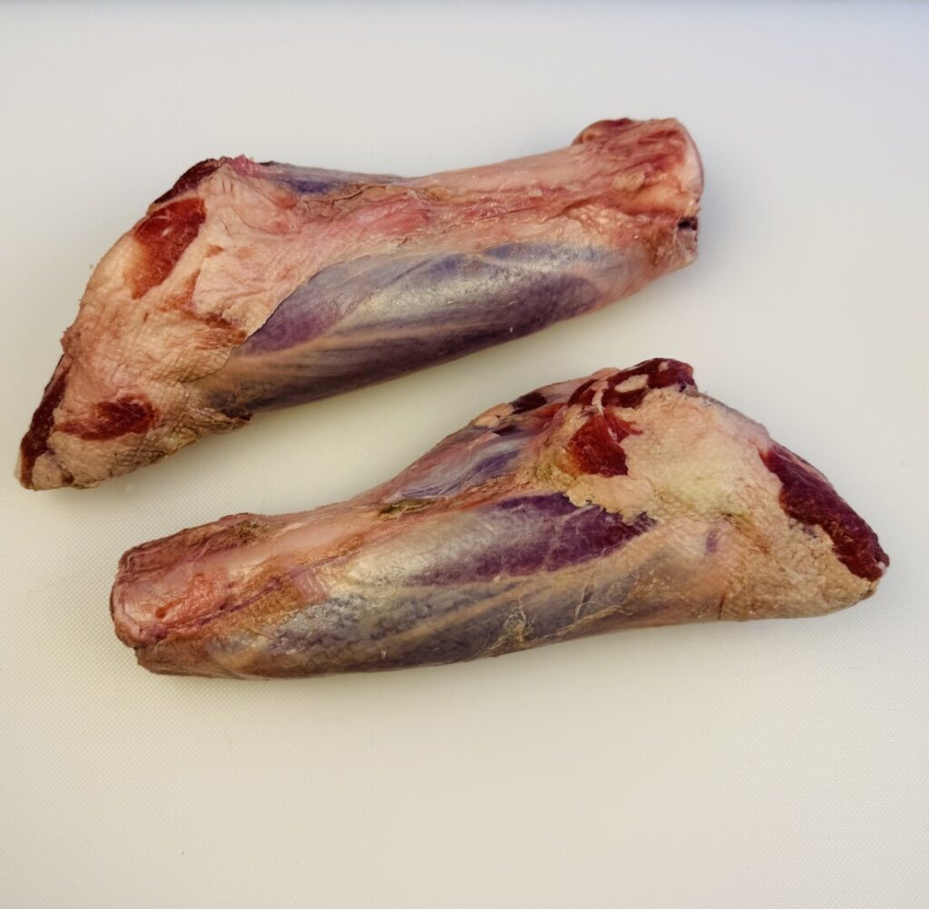 “Shank” is the butcher’s term for the upper leg of a mammal, extending from just above the knee (front legs) or hock (back legs) to where the leg meets the torso.