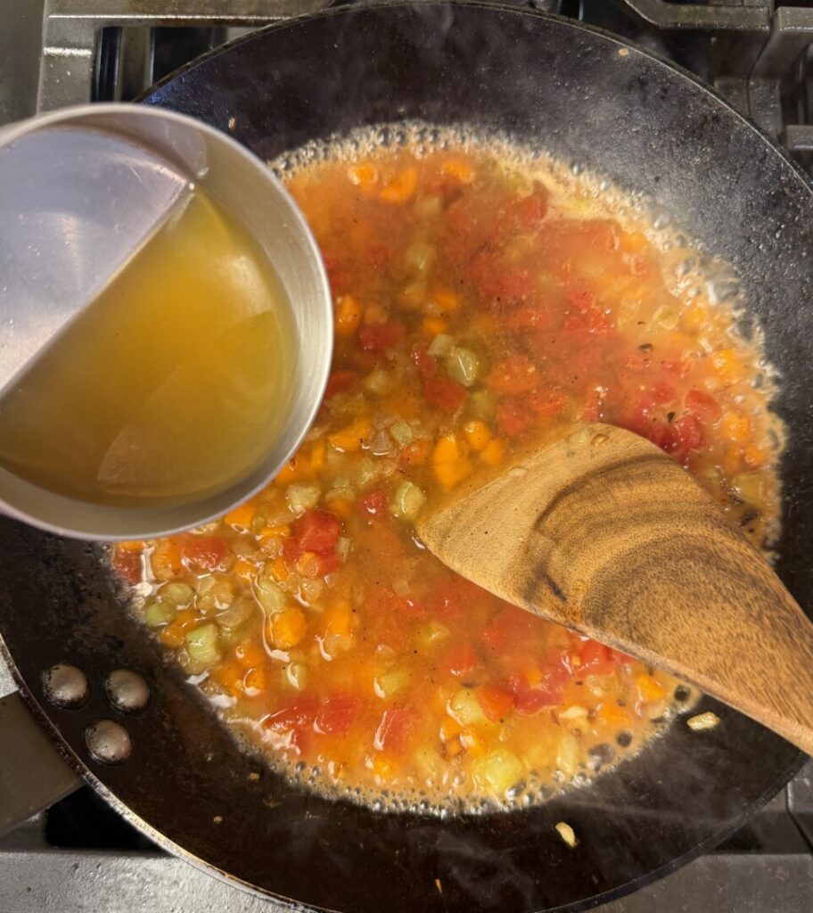 Evaluate the consistency of the sauce: it should be brothy and only slightly thickened. If necessary, thin it with a little more stock or water.