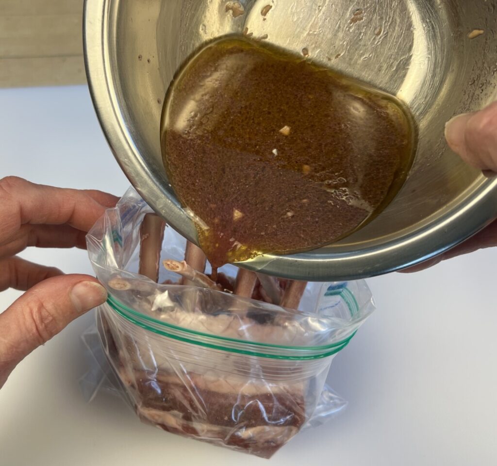 Although lamb rack doesn’t require tenderization, a short marination makes it tastier. Marinate your rack in a mixture of red wine, garlic, olive oil, and Dijon mustard in the refrigerator for up to 24 hours. Don’t leave it in the marinade any longer than that, or the acidity will break down the meat fibers, resulting in a “cottony” mouthfeel. Be sure to save the marinade for basting during roasting.