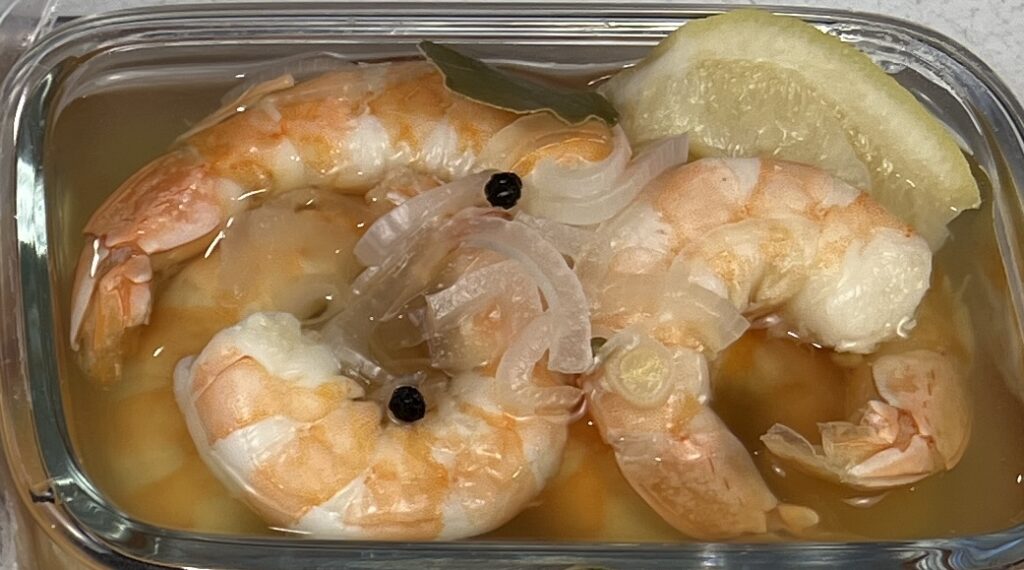 - Place the shrimp in a container just large enough to accommodate them, and pour the cuisson over them.